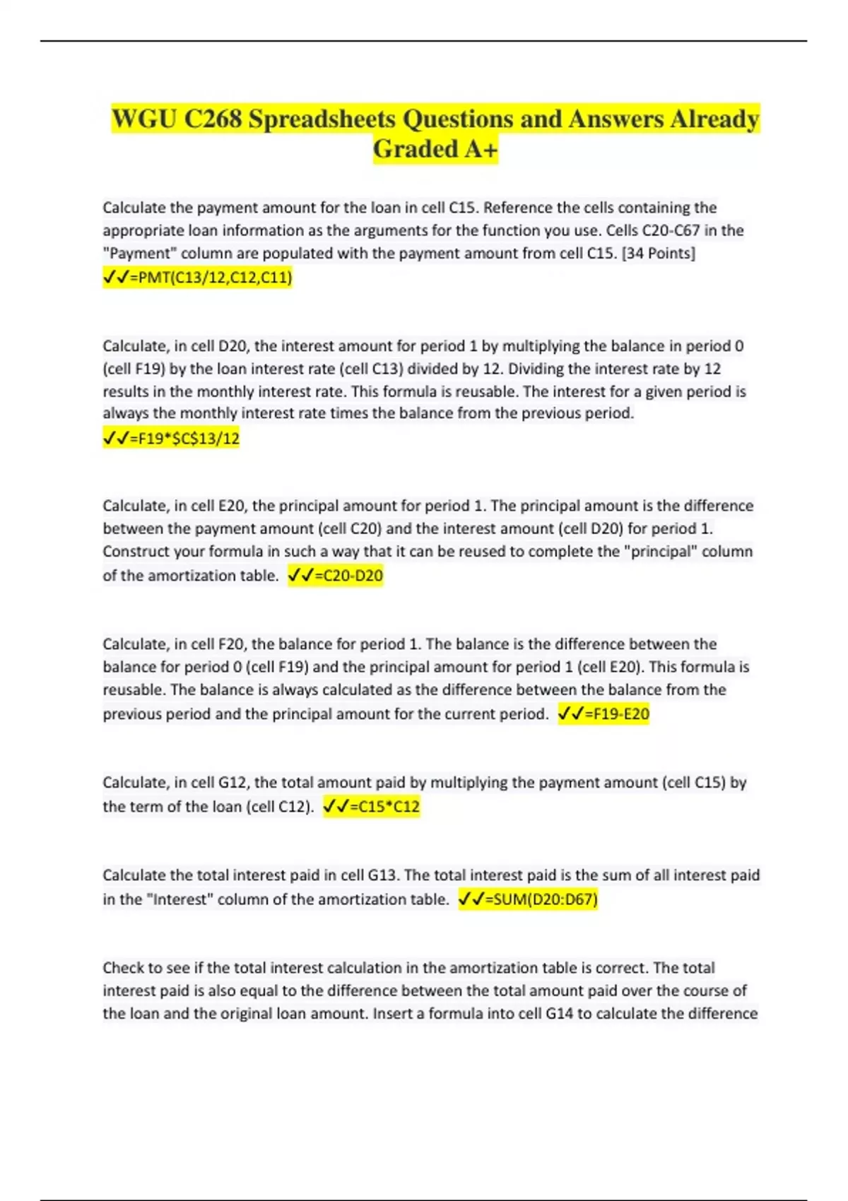 WGU C268 Spreadsheets Bundled Exams Questions and Answers Graded A+