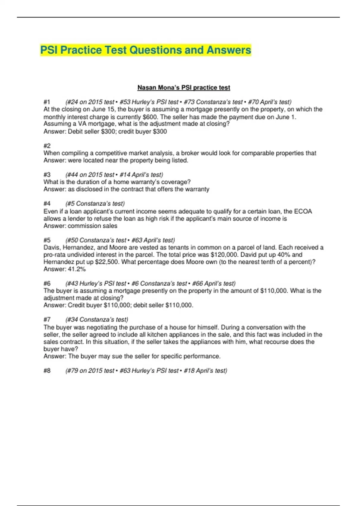 PSI - Pre-Shipment Inspection Real Estate Exams with Verified Questions and Answers 2023