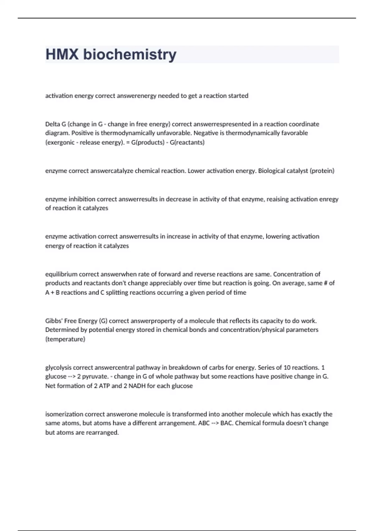 HMX Biochemistry exam 2023 with 100% correct answer HMX Biochemistry exam 2023 with 100% correct answer