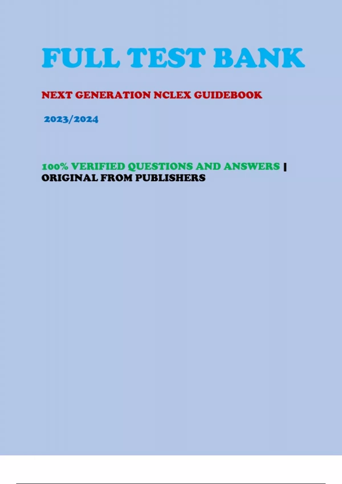 Next Generation NCLEX (NGN) Exam 2023/2024 / Case Study and Exams Included