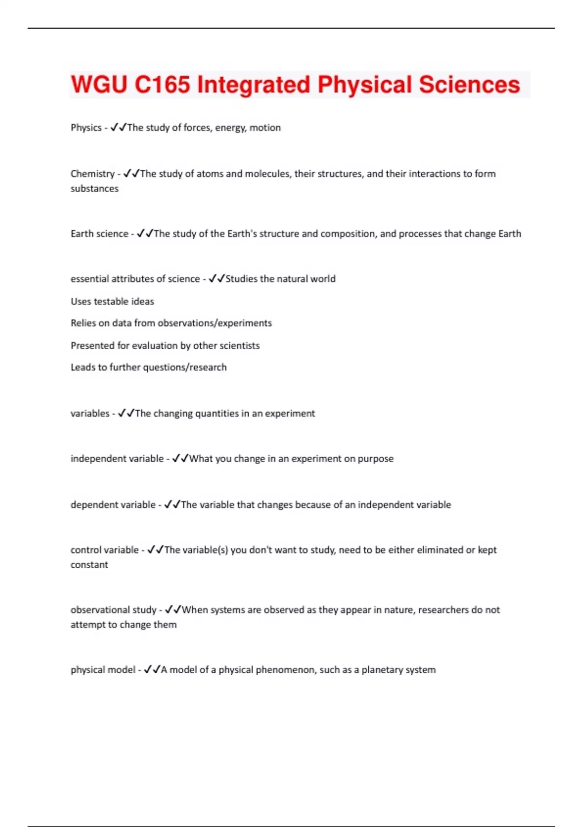 Bundle for WGU C165 Integrated Physical Sciences tests compilation | everything you need