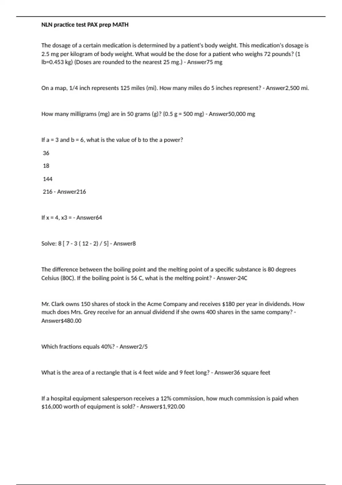 1 Exam (elaborations) RN Pre-Nursing Exam Pax-NLN (WORD) Test well Defined with Accurate Answers. 2 Exam (elaborations) PAX Science NLN Exam Questions with Certified Answers Best Graded A+ 3 Exam (elaborations) Pax Math Test Well Defined with Accurate Answers. 4 Exam (elaborations) NLN Practice Test PAX Prep MATH Exam Questions and Answers Lates