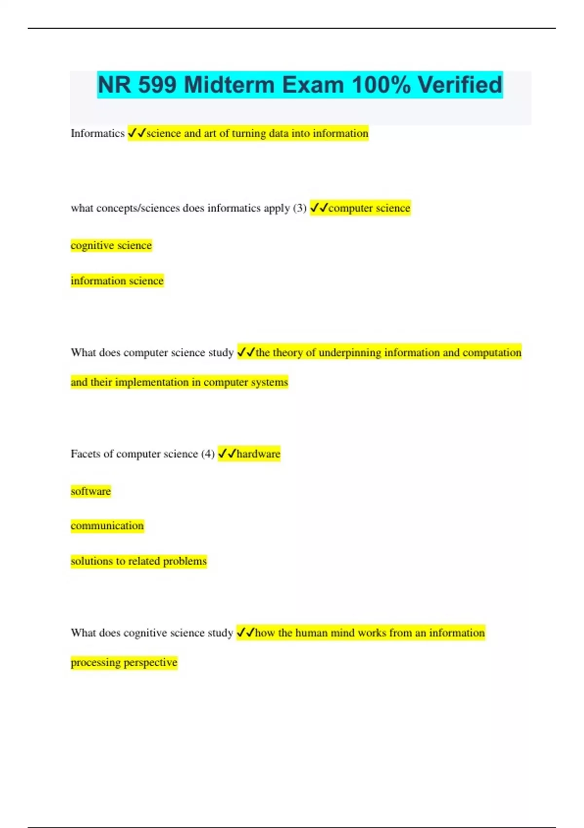 NR 599- Midterm Exam (2022/2023) Rated A+