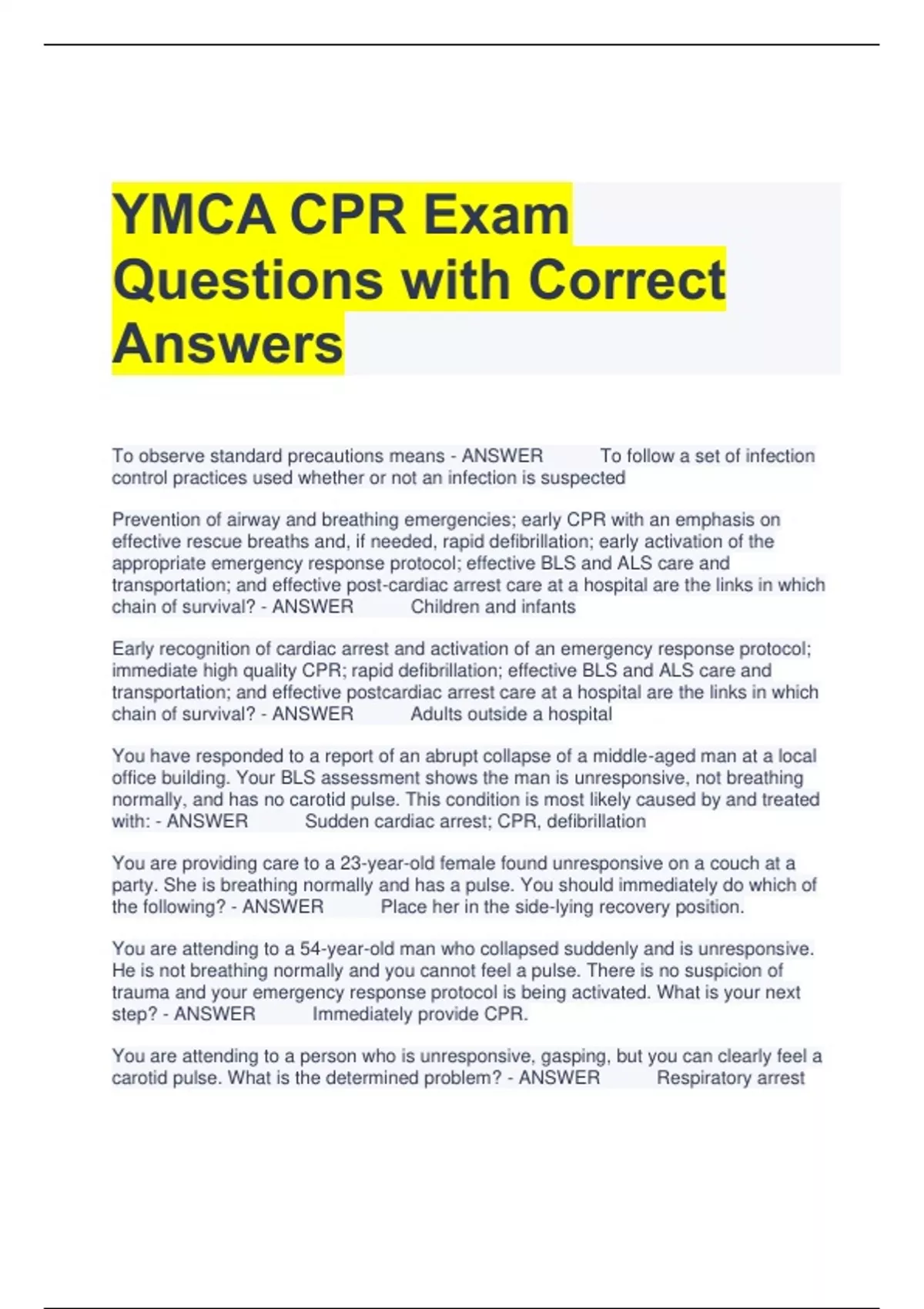 YMCA 2023 Exam Questions with Complete Solutions 2 Exam (elaborations) MCA LIFEGUARD Exam Questions and Answers 3 Exam (elaborations) YMCA CPR class notes test Questions and Answers 4 Exam (elaborations) YMCA CPR EXAM II Questions with Correct Answers 5 Exam (elaborations) YMCA Lifeguard 2023 test Questions with Correct Answers 6 Exam (elabora