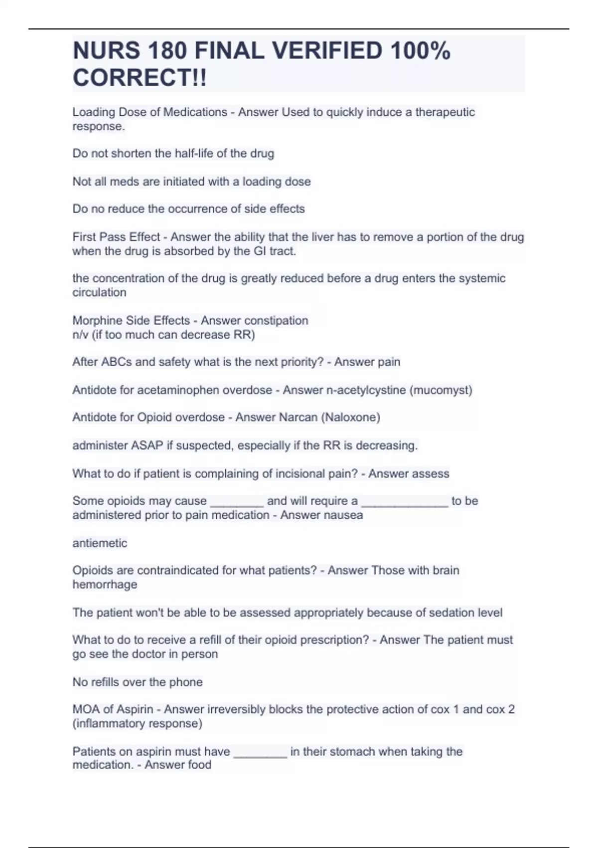 NURS 180 PHARM EXAM BUNDLE WITH A GUARANTEED A+