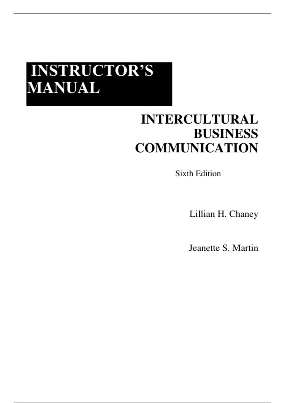 Intercultural Business Communication 6e Lillian Chaney, Jeanette Martin (Instructor Manual with Test Bank)