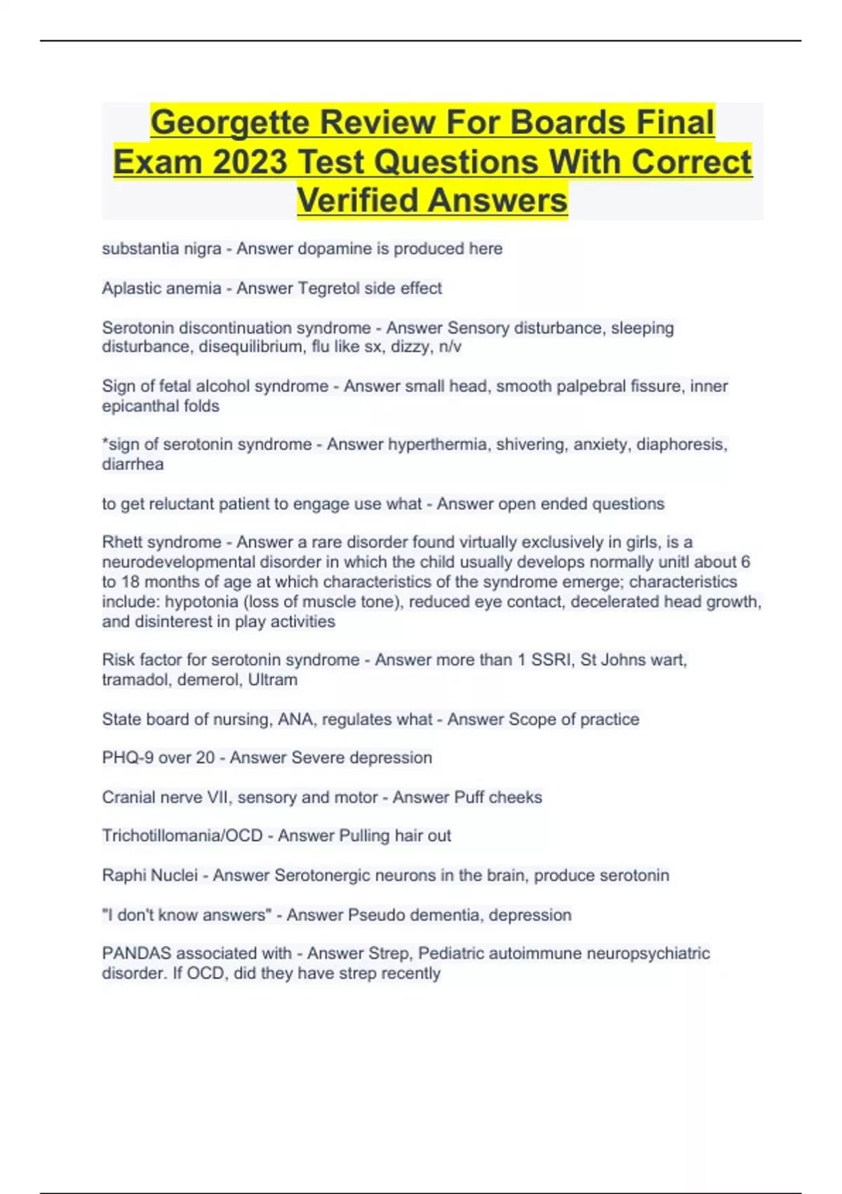 Georgette Review For Boards Final Exam 2023 Test Questions With Correct Verified Answers