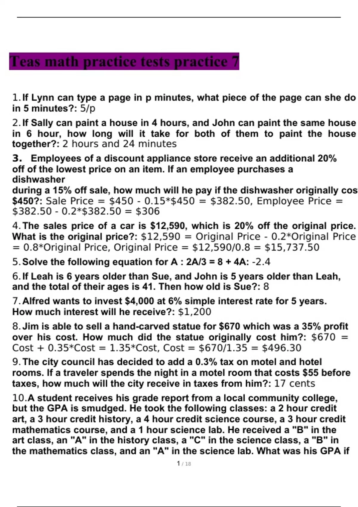 ATI Teas 7 math practice tests With 100% Correct Answers.