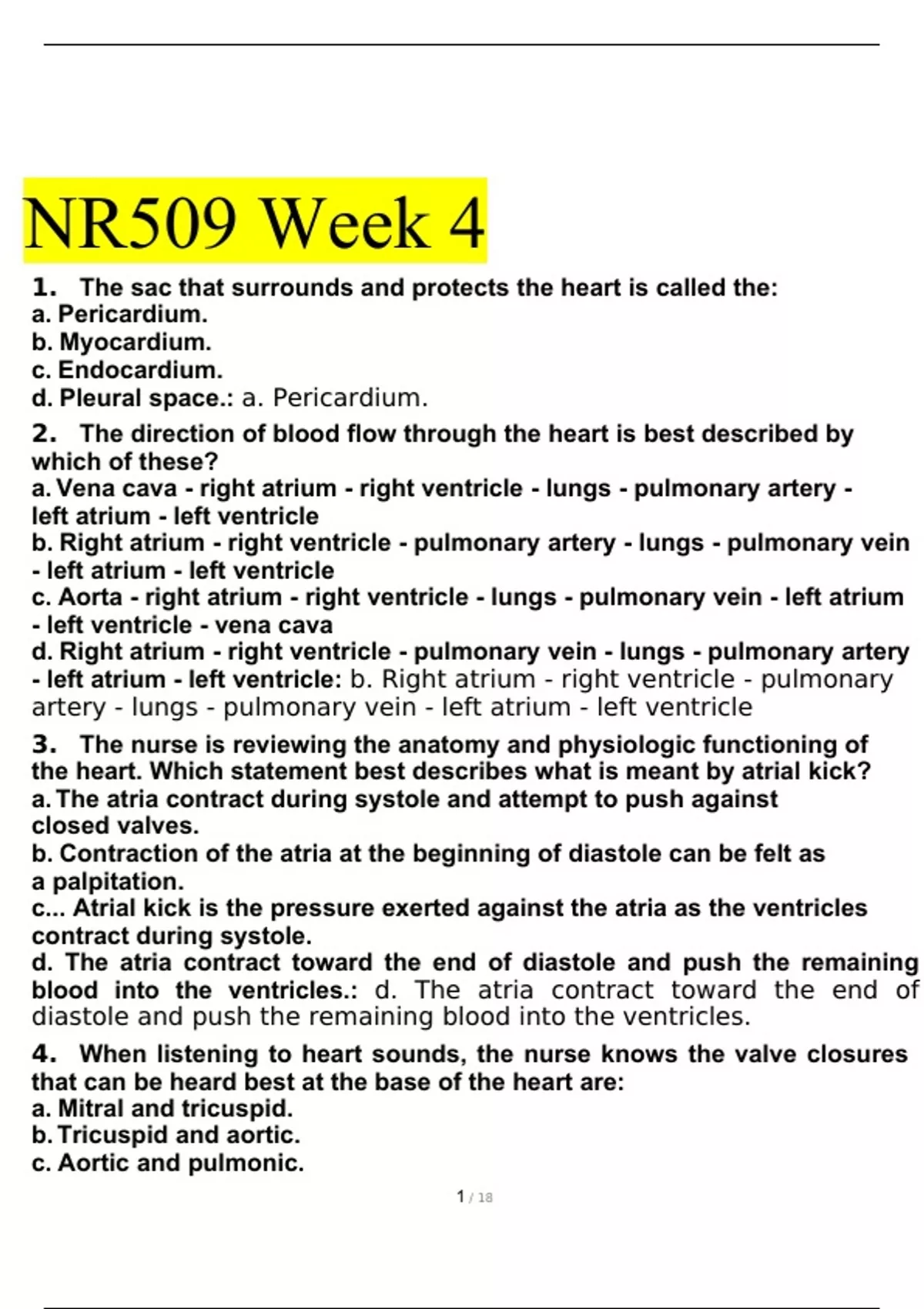 NR509 Week 4 – Questions And Answers 2022/2023 With Verified Answers
