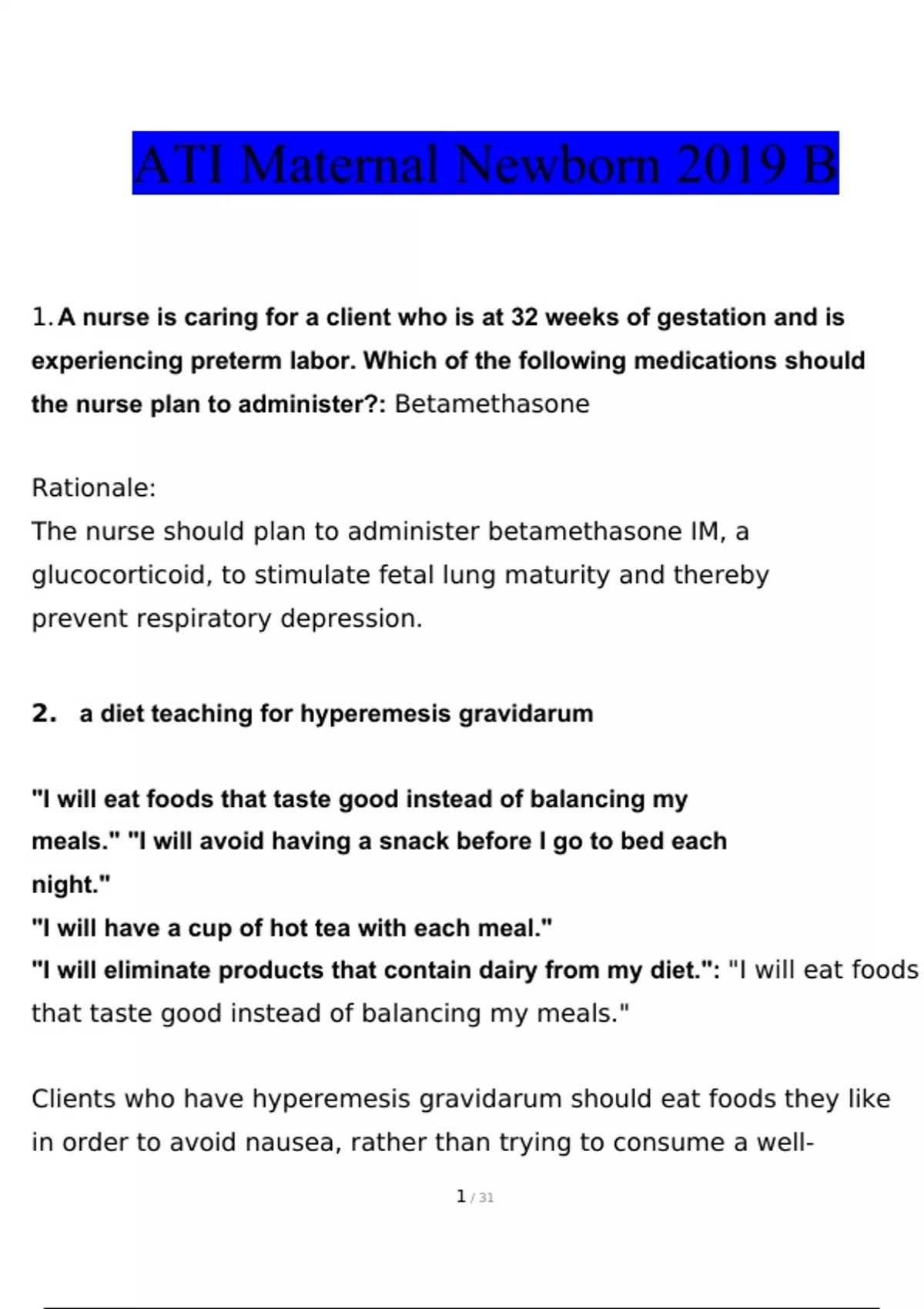 ATI Maternal Newborn Proctored Test Prep Questions & Answers Graded A+