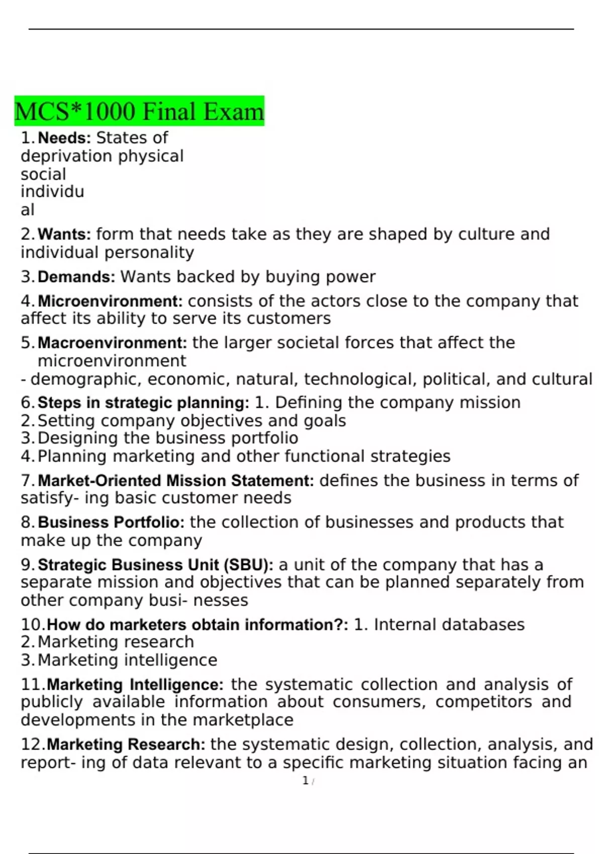 MCS 1000 Final Exam 2022 || BUNDLE PACK with complete solution