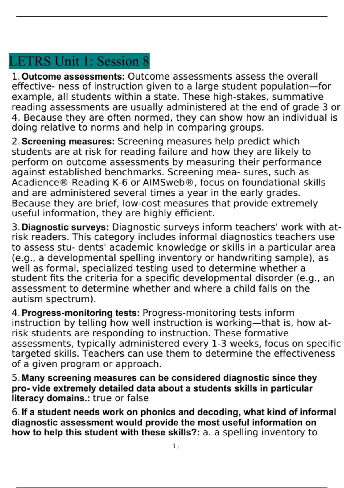LETRS Unit 2 Session 1 Mini-Quiz