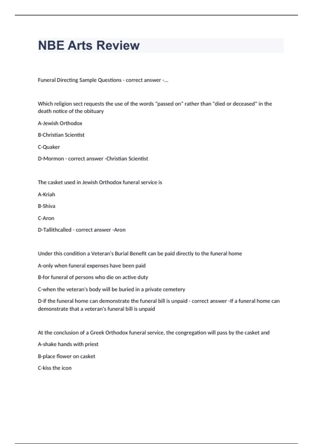 NBE Practice Exam- 2023 with 100% correct answers NBE ARTS Sample exam 2023 with 100% correct answers