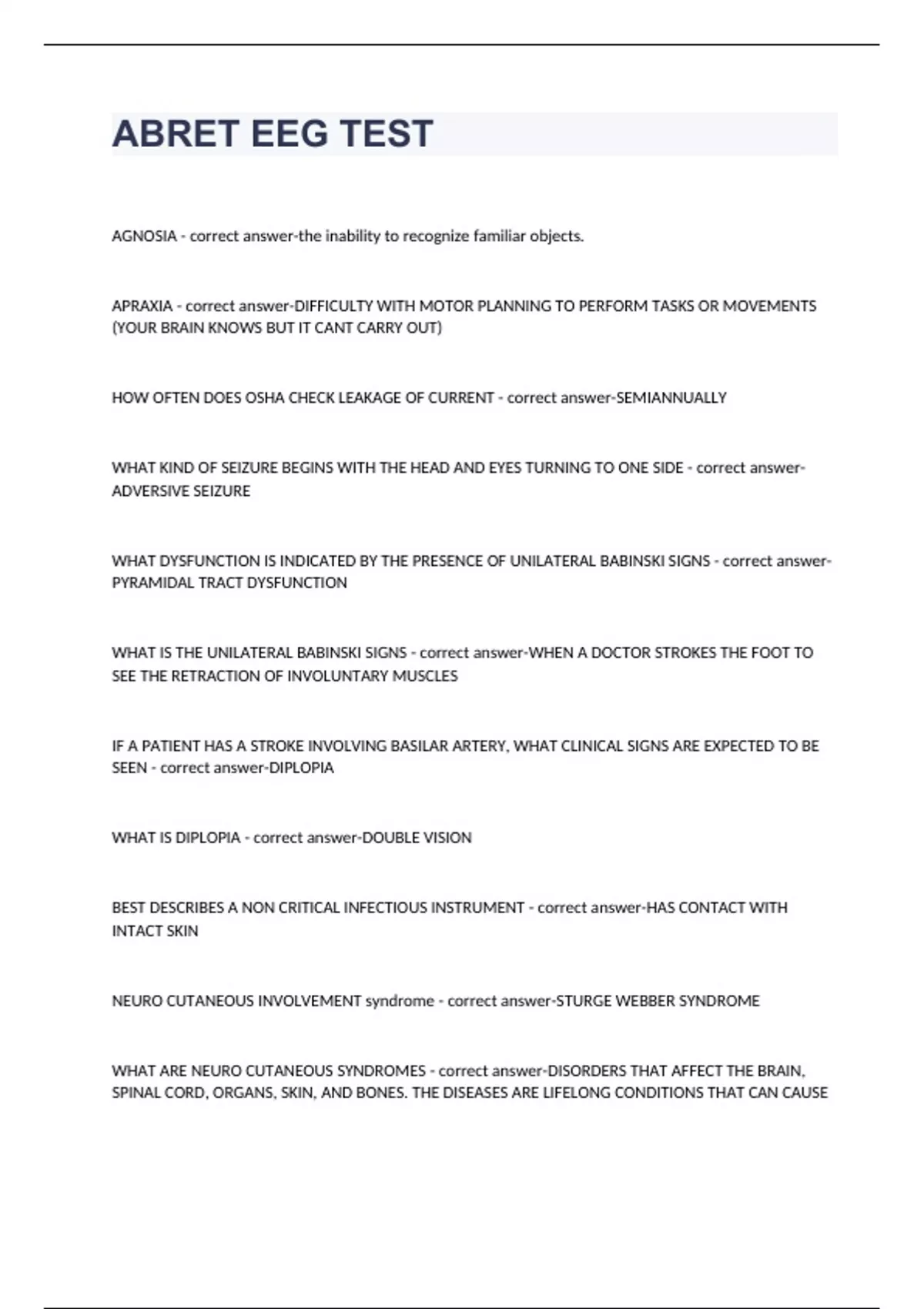 EEG EXAM 1 2023 WITH 100% CORRECT ANSWERS EEG BOARD PREP PRACTICE EXAM 2023 WITH 100% CORRECT ANSWERS