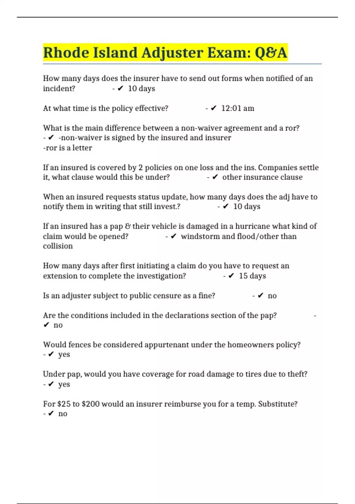 PACKAGE:: RHODE ISLAND ADJUSTER / INSURANCE EXAMS