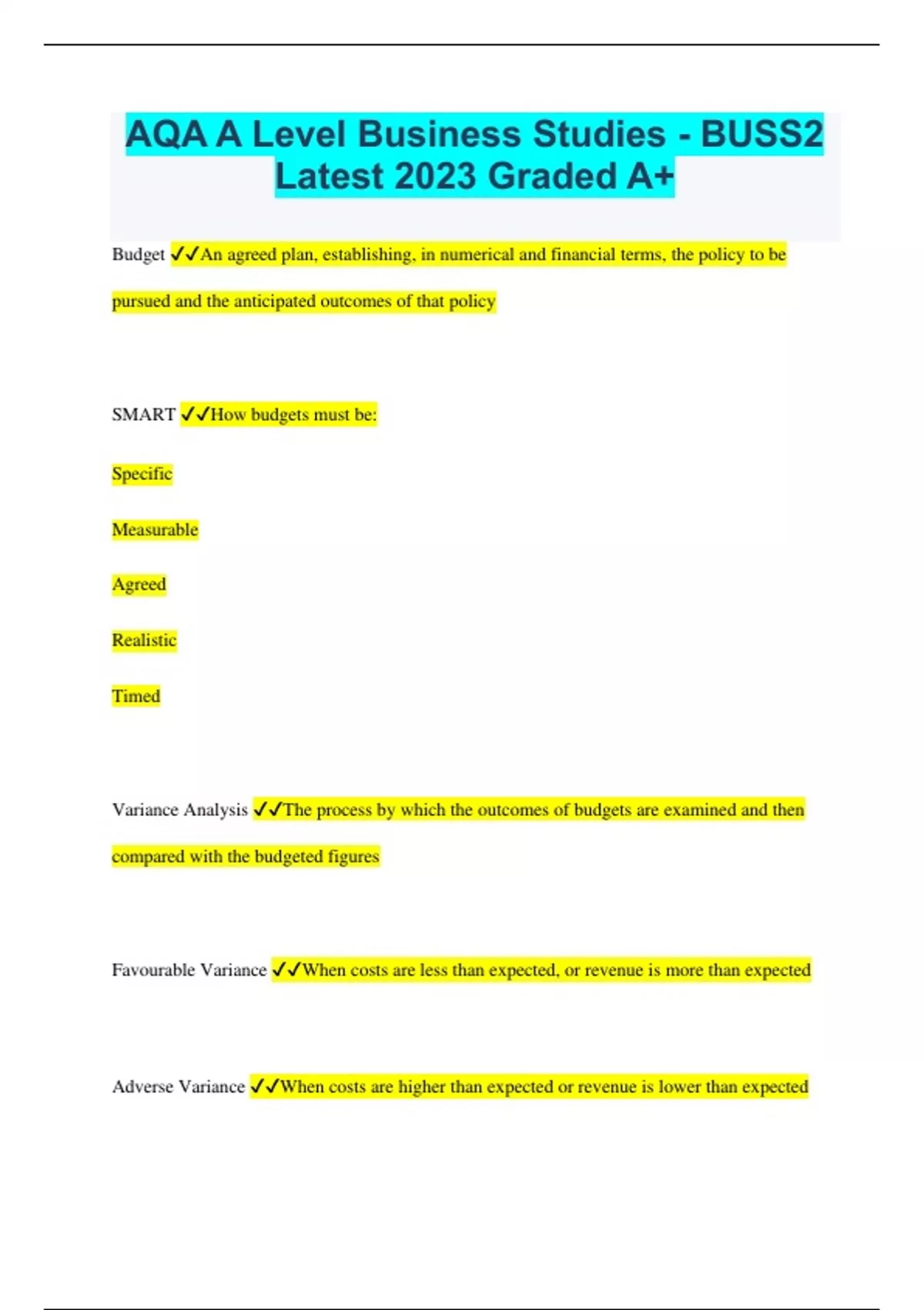 AQA A Level Business Studies - BUSS2 Latest 2023 Graded A+