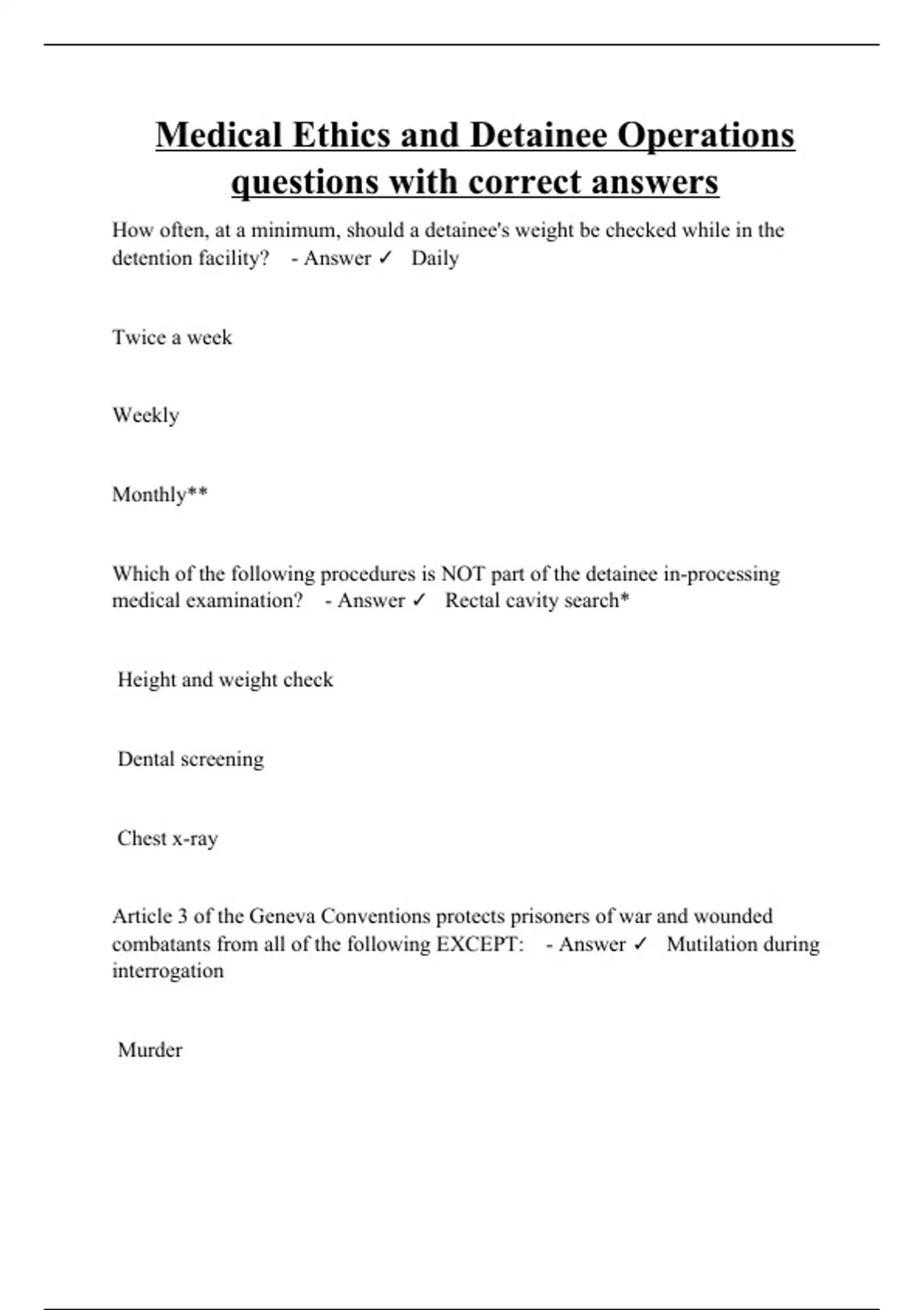Medical Ethics and Detainee Operations questions with correct answers