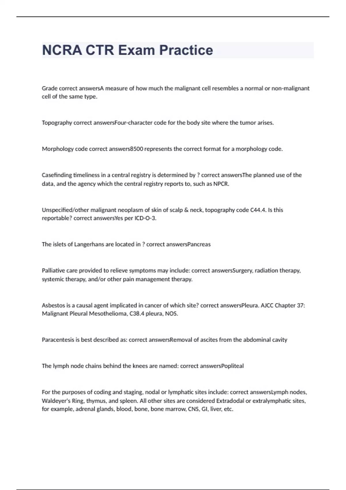 CTR EXAM 2023 WITH 100% CORRECT ANSWERS CancerRegistry exam 2023 with 100% correct answers