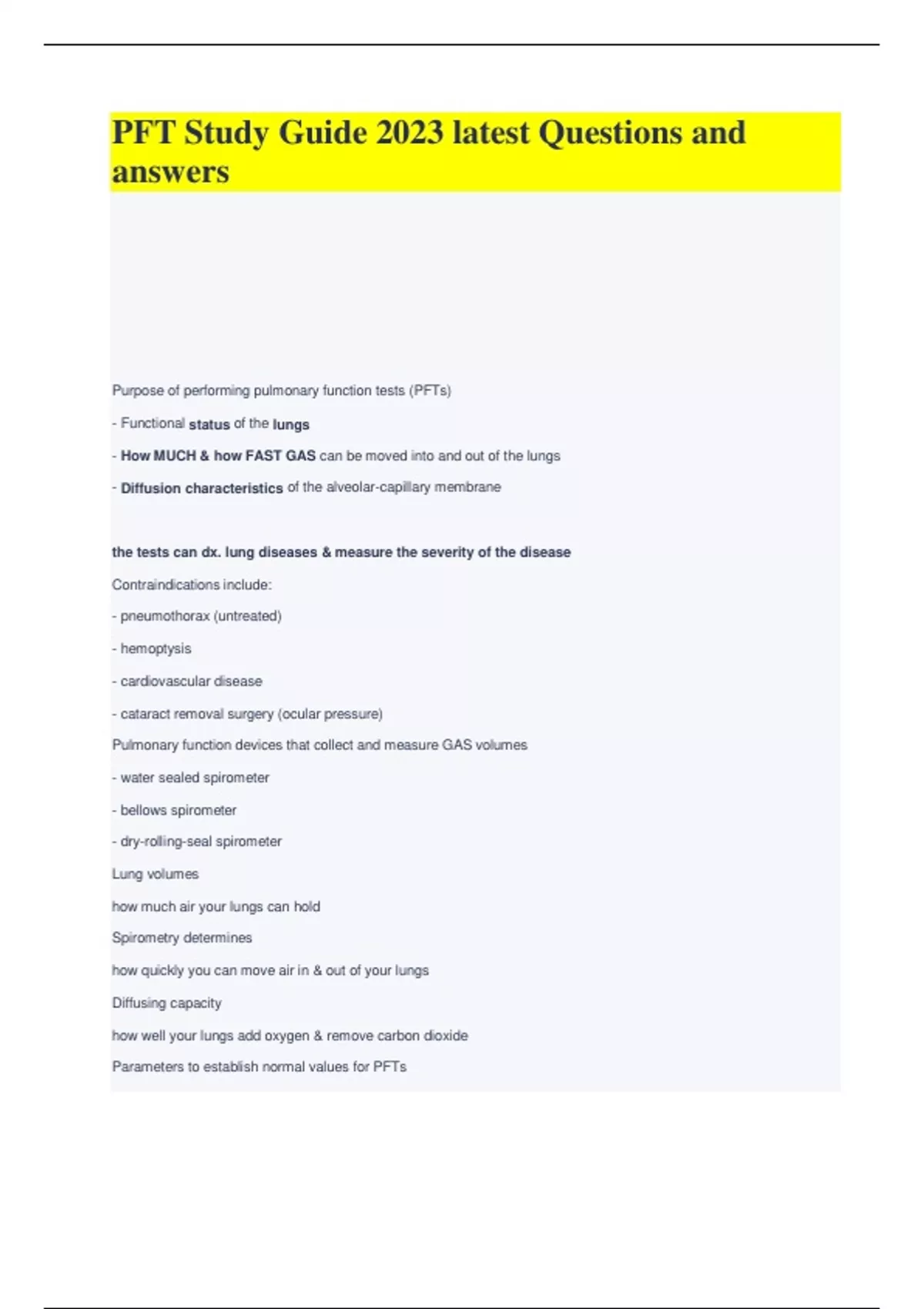 PFT Monitor Certification Overview study guide with complete solutions Already passed