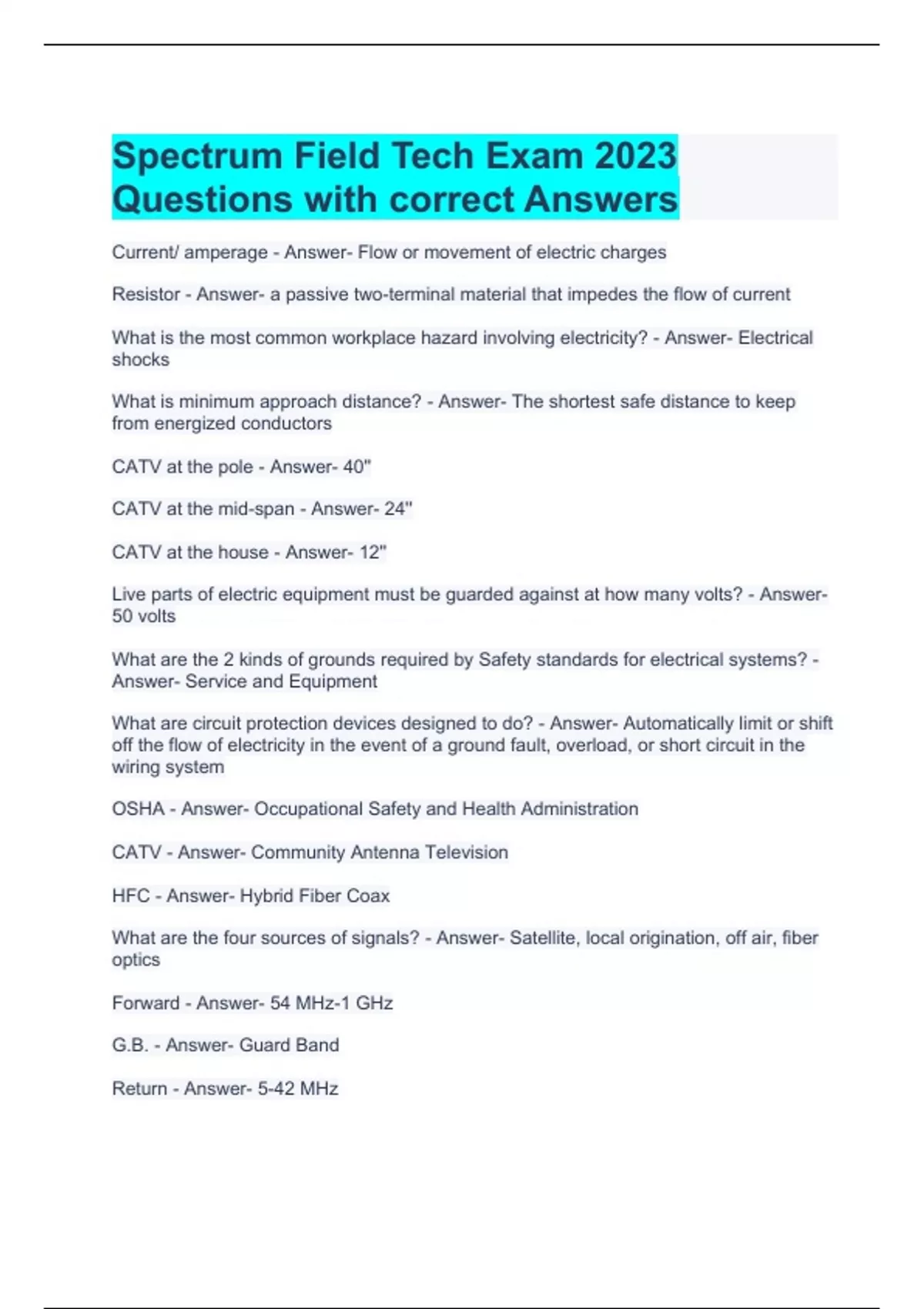 Spectrum Field Tech Exam 2023 Questions with correct Answers Field tech 1 Exam with complete solutions Progression: Field Tech II - III Conventional Exam 2023 Field tech 2-3 Final Exam 2023 Questions and Answers Final Exam: Progression: Field Tech III - IV Final Field tech 5 to 6 Exam Questions with Verified Answers Field Tech II - III Chapter 8: