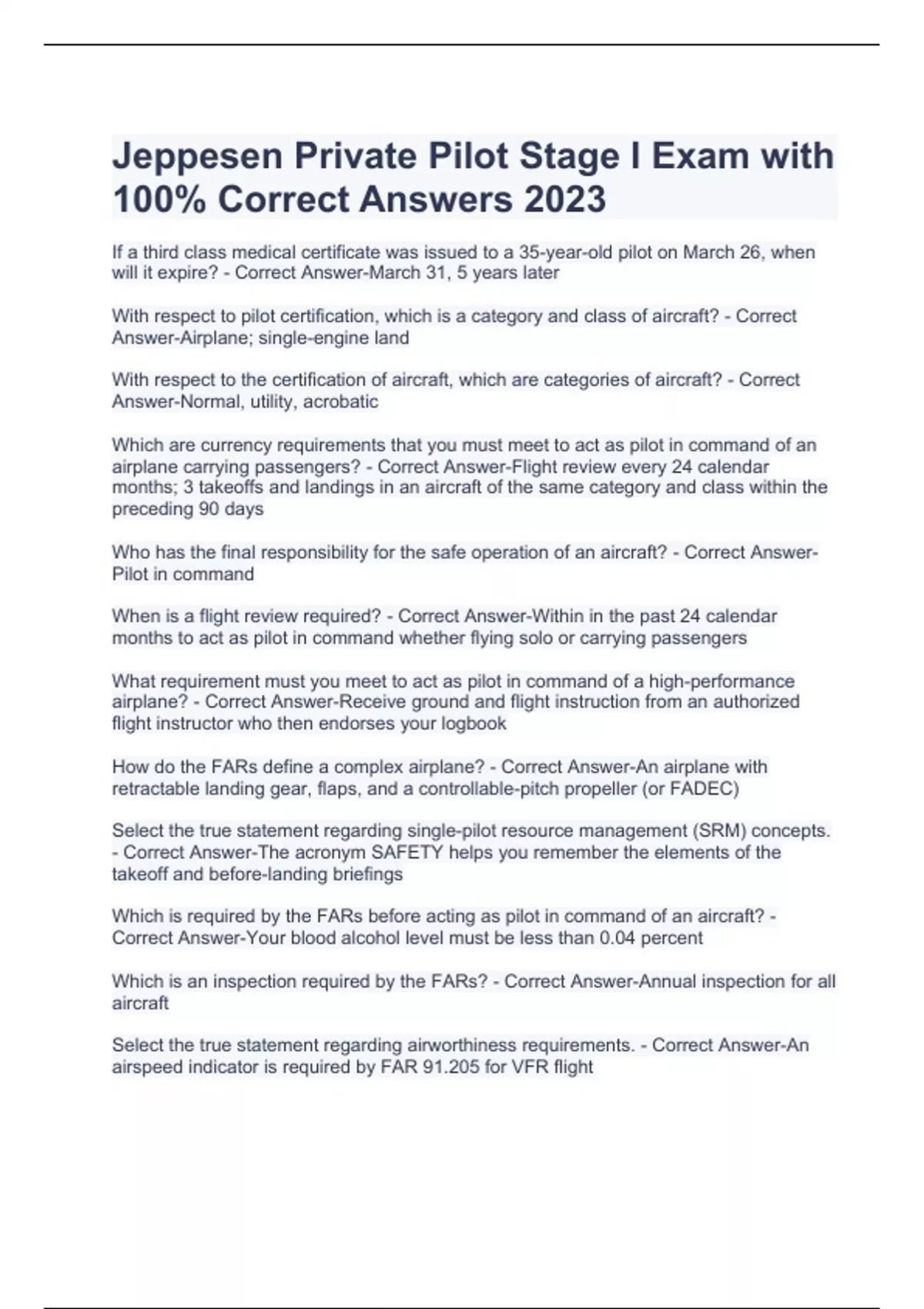 VALUE PACK FOR Jeppesen Private Pilot StageI,II, III Exam with 100% Correct Answers 2023