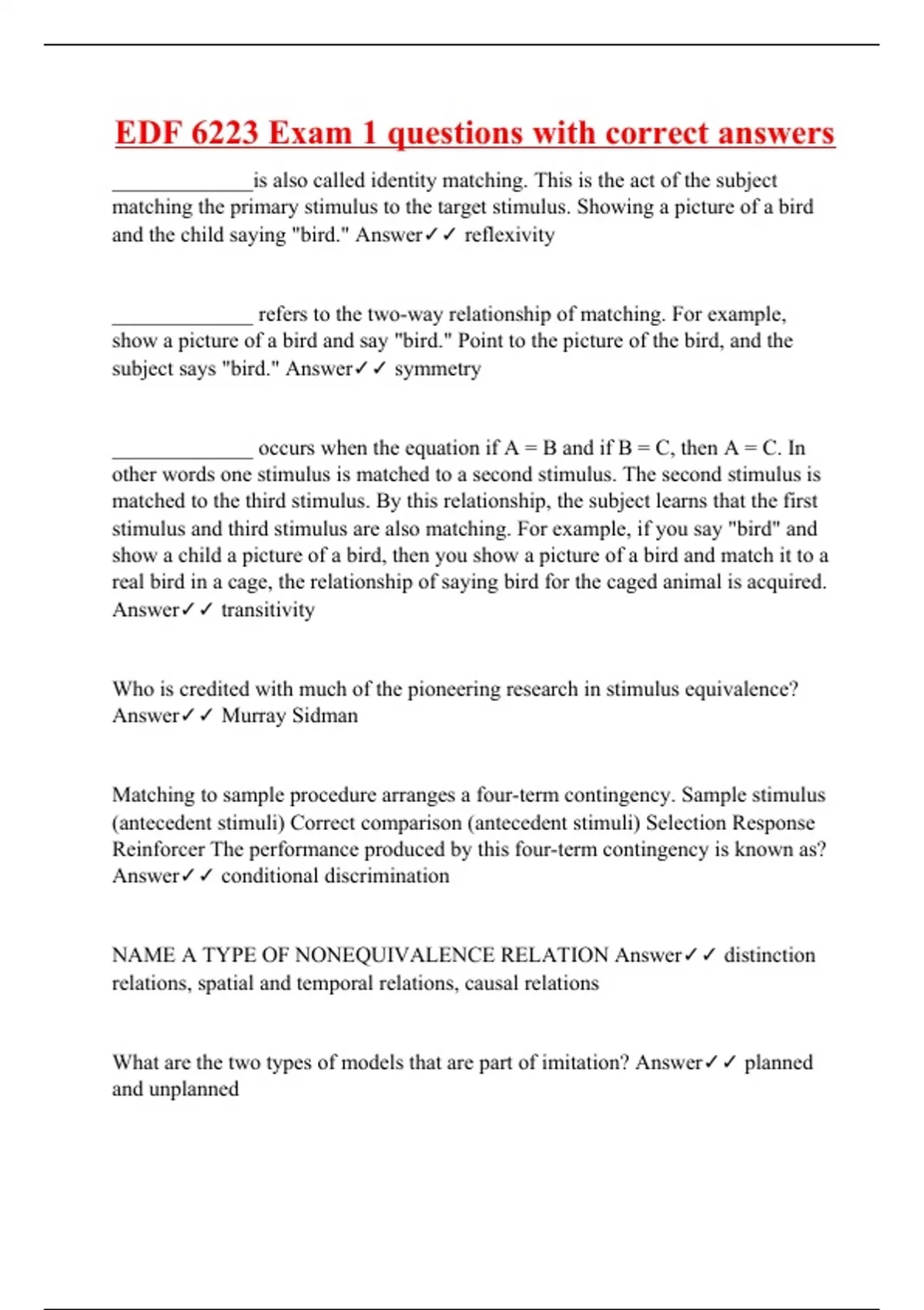 UWF EDF 6223 STUDY SET 1 questions with correct answers