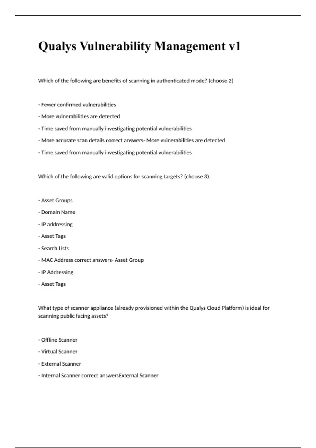 Qualys Vulnerability Management v1 bundled exams 2023 with 100% correct answers