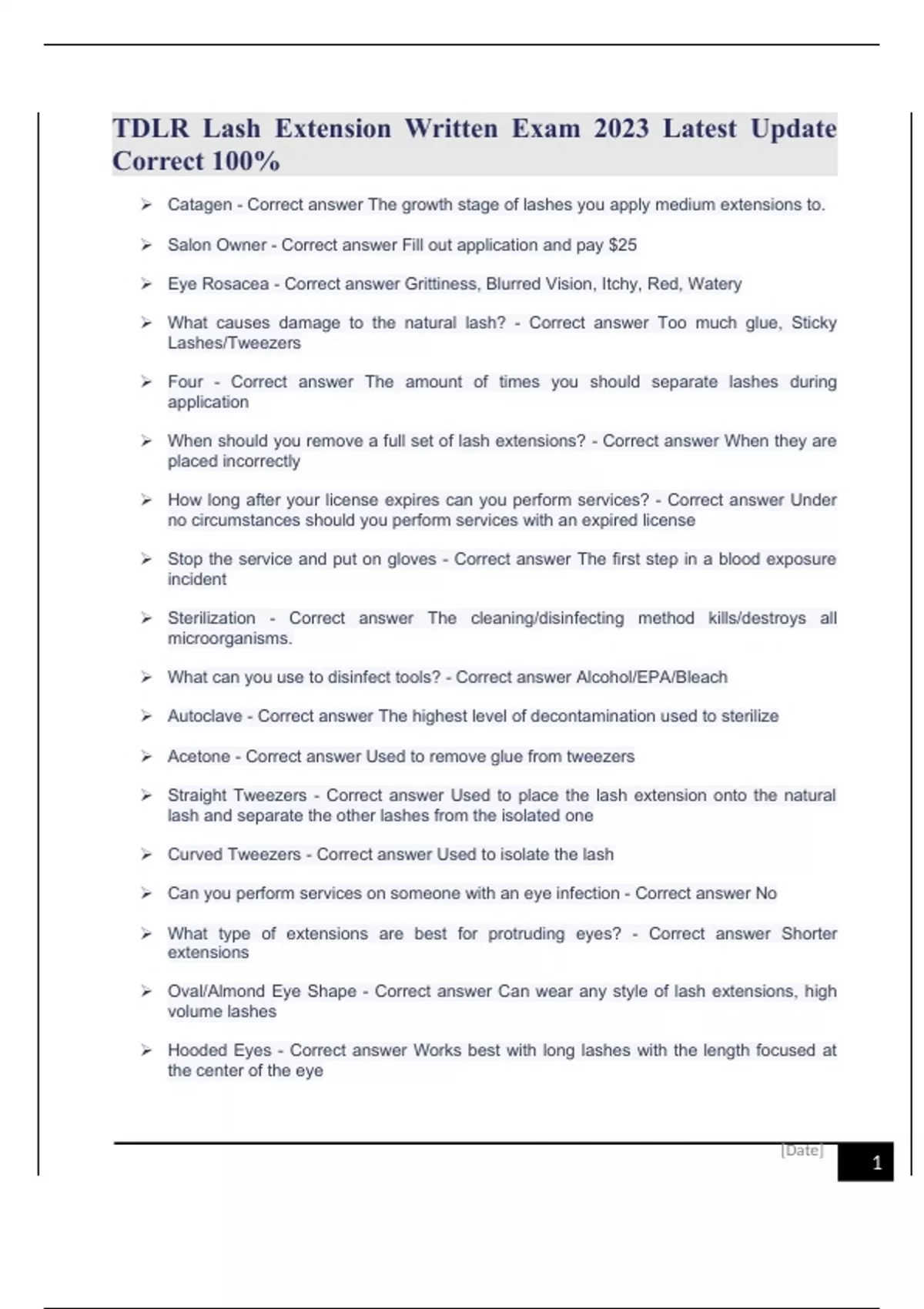 EYELASH EXTENSION TDLR REVIEW Exam Bundle Graded A+(Solutions)