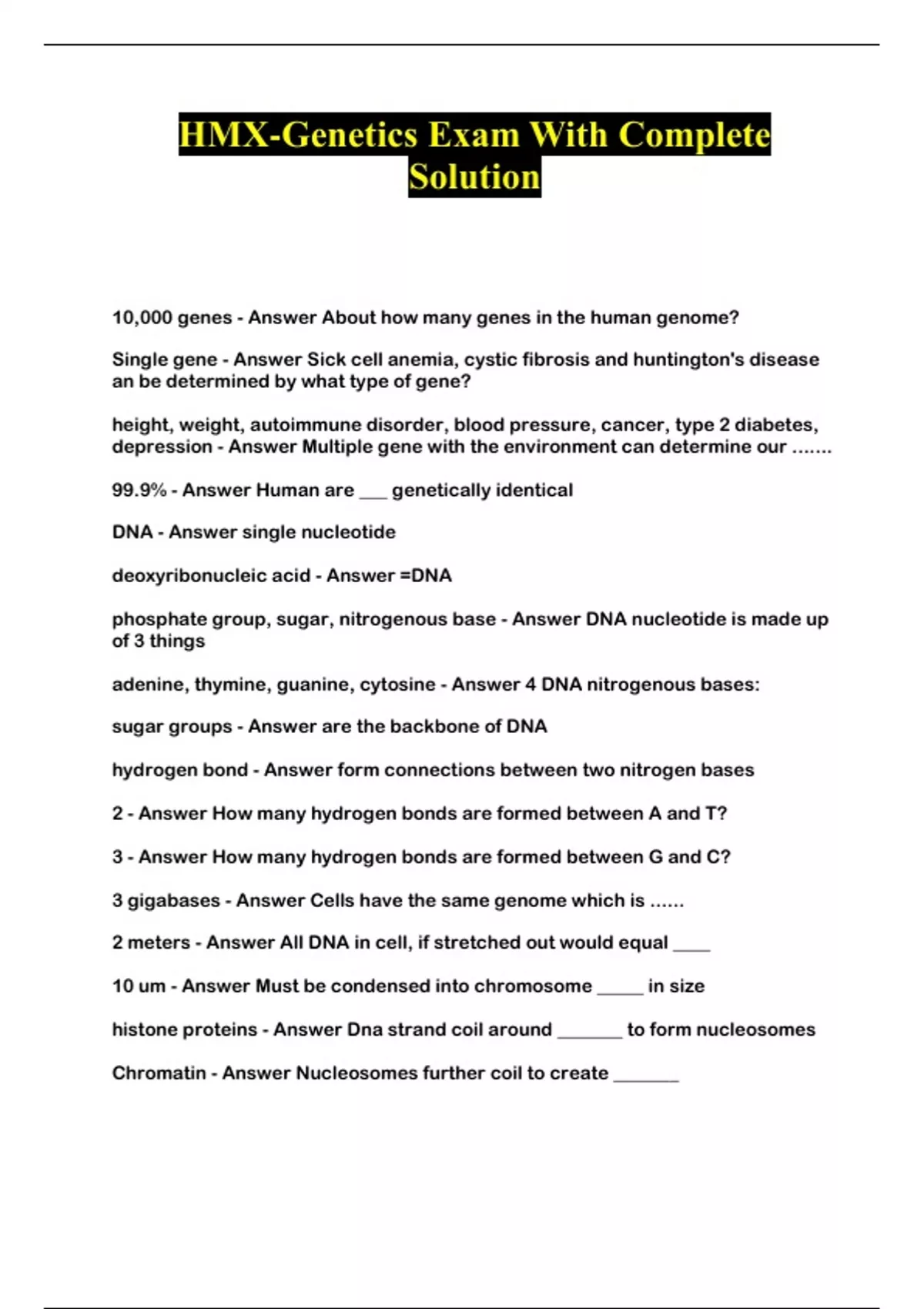 HMX Genetics Exam Questions With Answers Graded A+ @ 2023