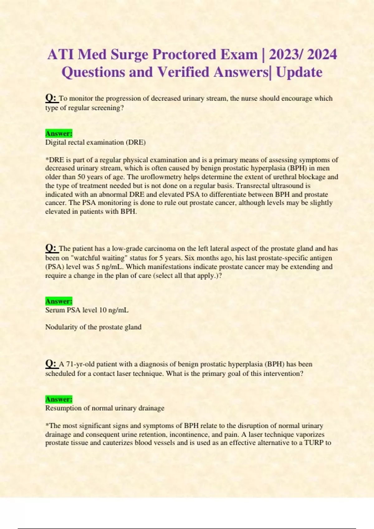 ATI Med Surge Proctored Exam | 2023/ 2024 Questions and Verified Answers| Update