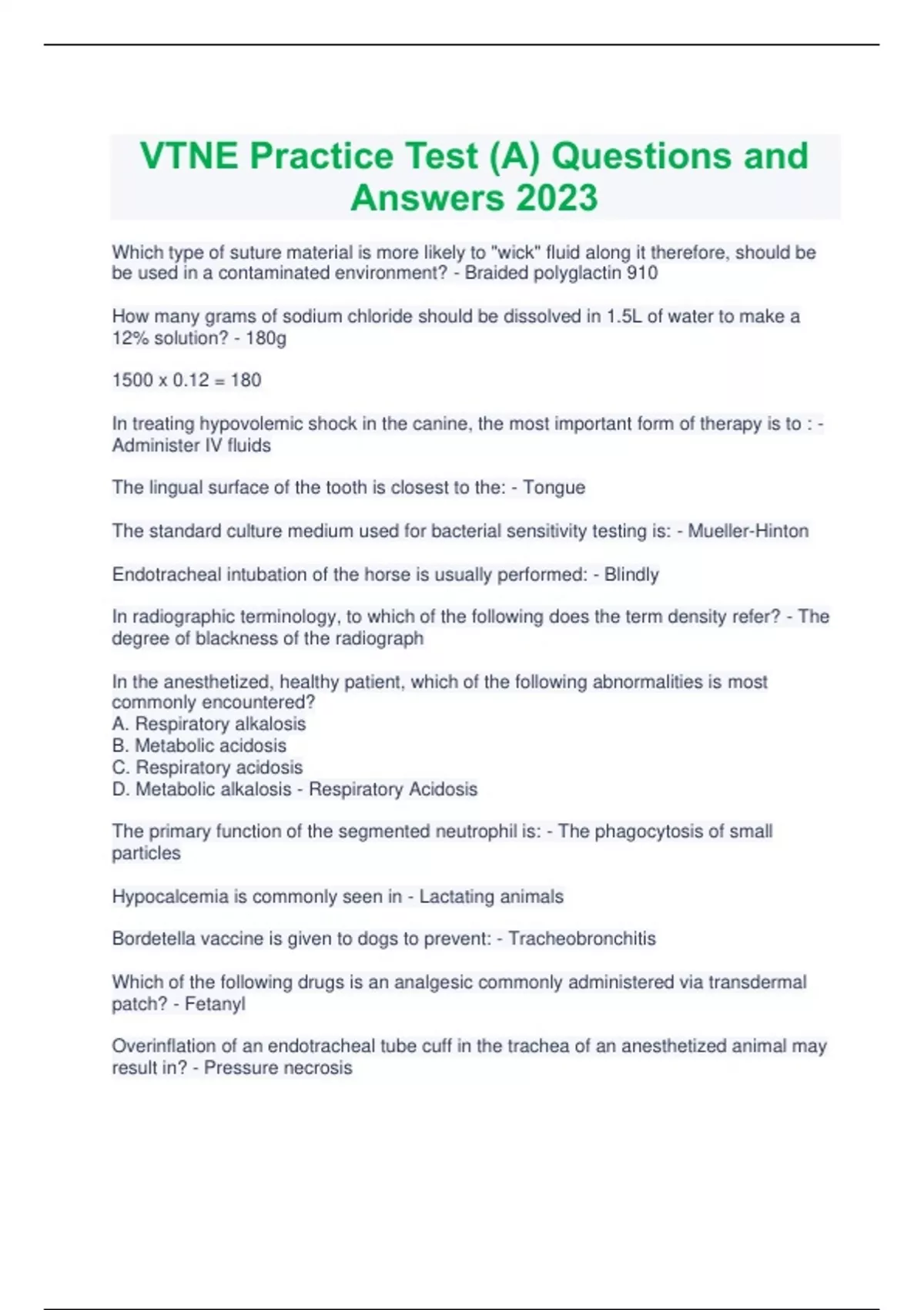 BUNDLE For VTNE Practice Test (A,B,C,D) Questions and Answers 2023BUNDLE For VTNE Practice Test (A,B,C,D) Questions and Answers 2023BUNDLE For VTNE Practice Test (A,B,C,D) Questions and Answers 2023