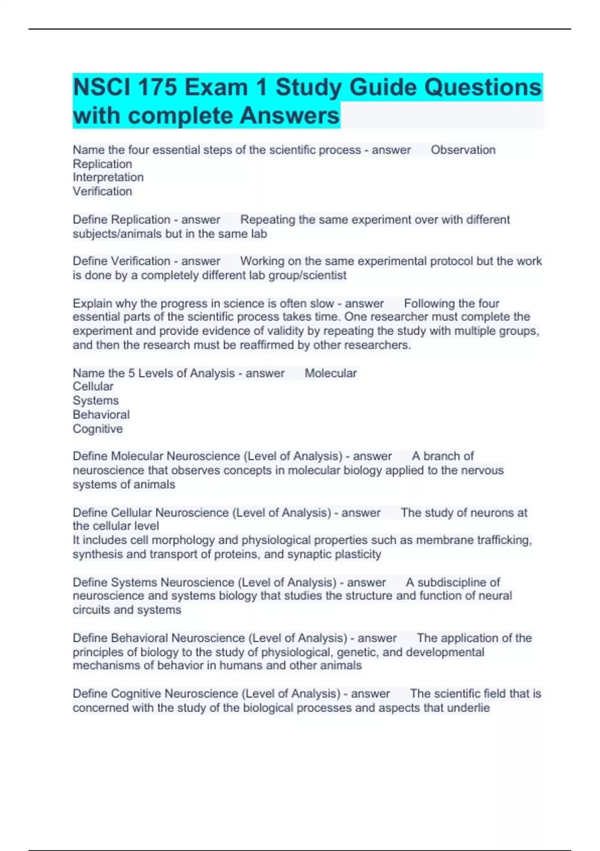 NSCI 175 TEST COMPILATION BUNDLE 2023