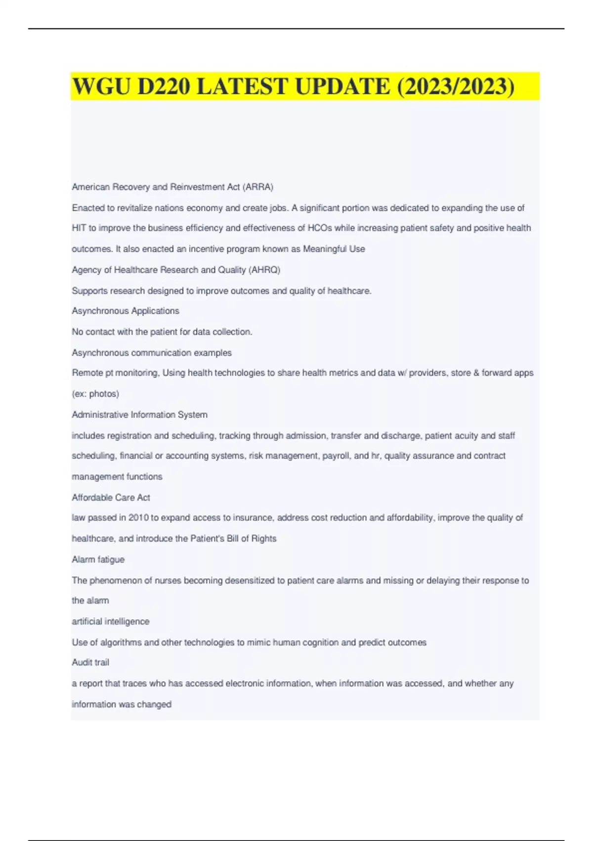 WGU D220- Information Technology in Nursing Practice Exam LATEST UPDATE 2023