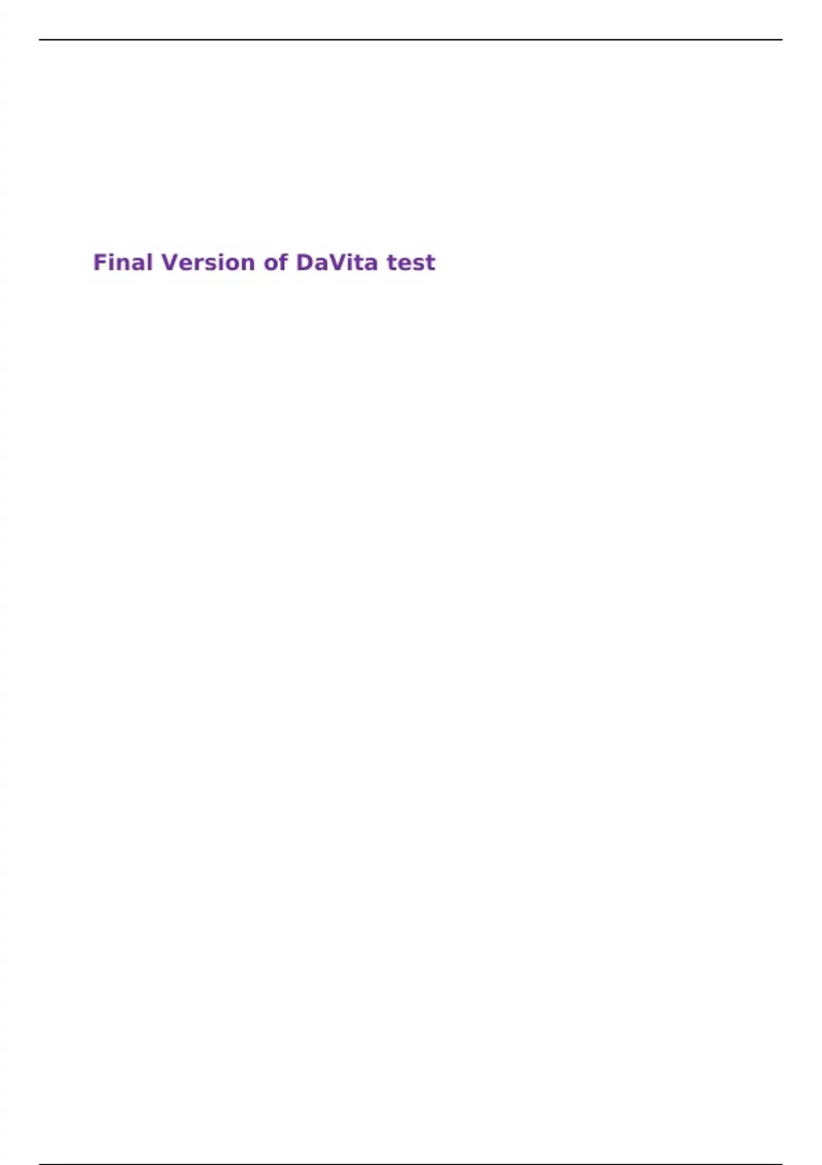 DAVITA EXAM QUESTIONS AND ANSWERS LATEST UPDATED.