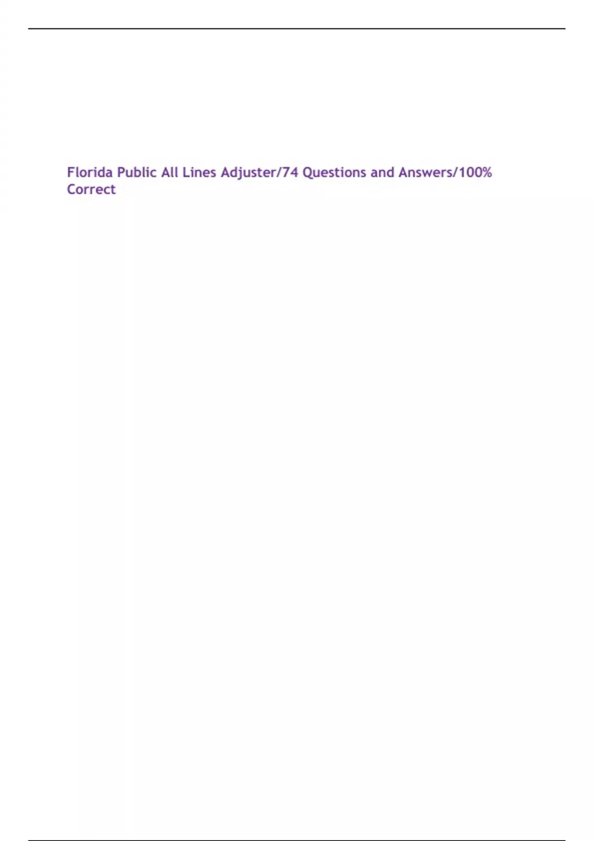 Florida Public All Lines Adjuster/74 Questions and Answers/100% Correct