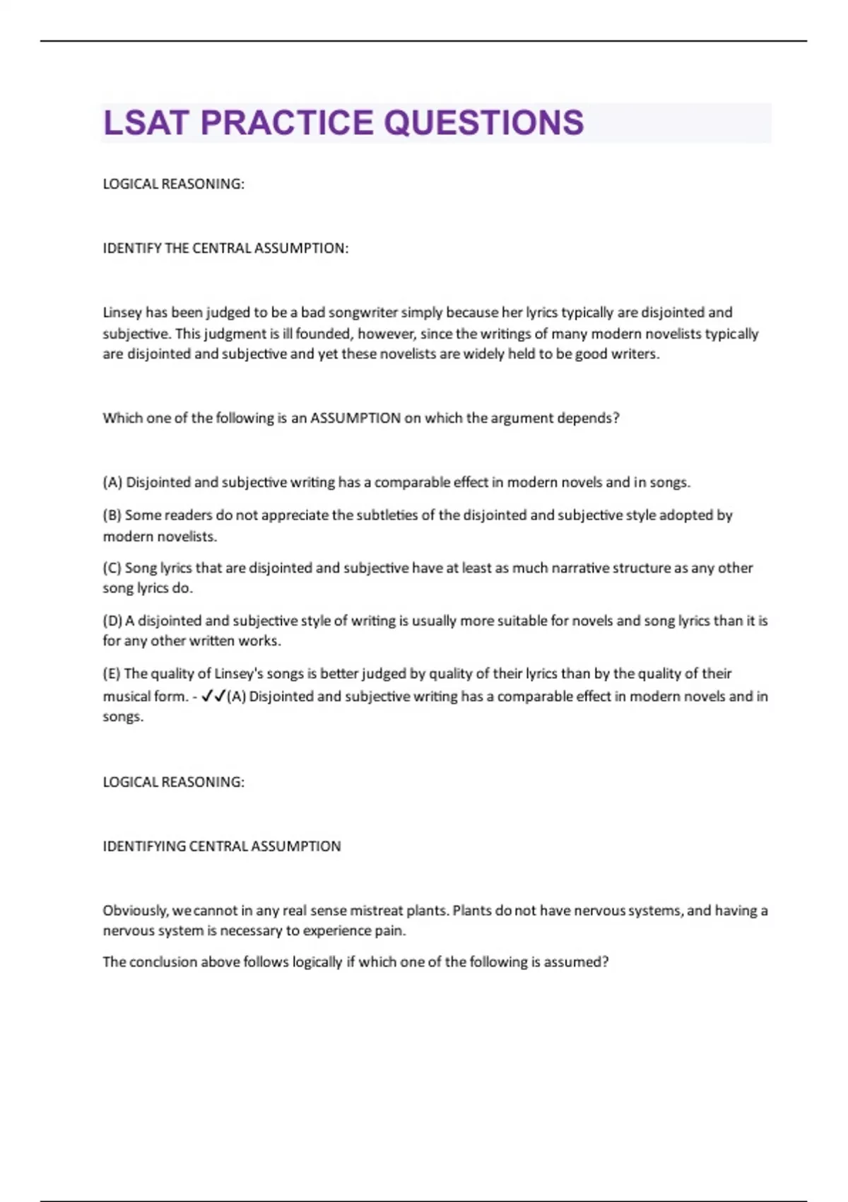 LSAT PRACTICE QUESTIONS| Questions and Answers with complete solution