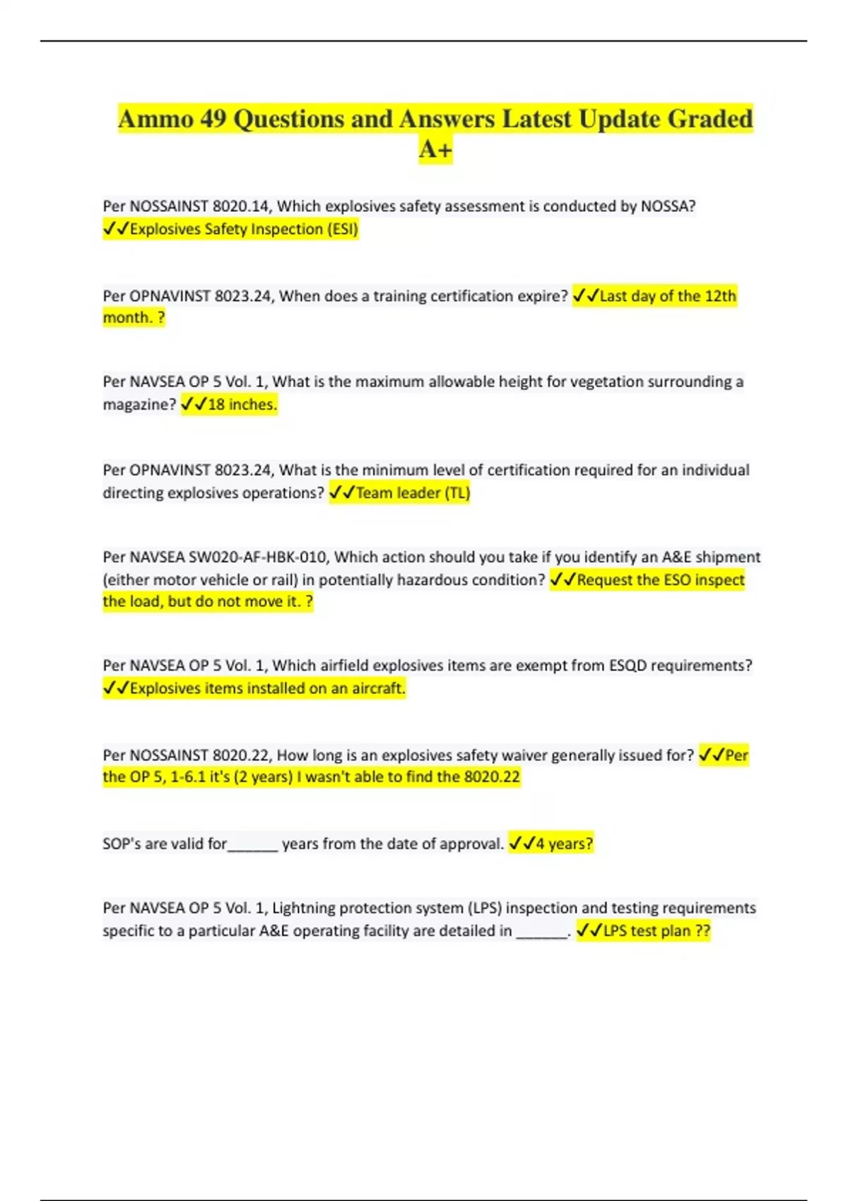 AMMO 45 EXAM QUESTIONS AND ANSWERS GRADED A+