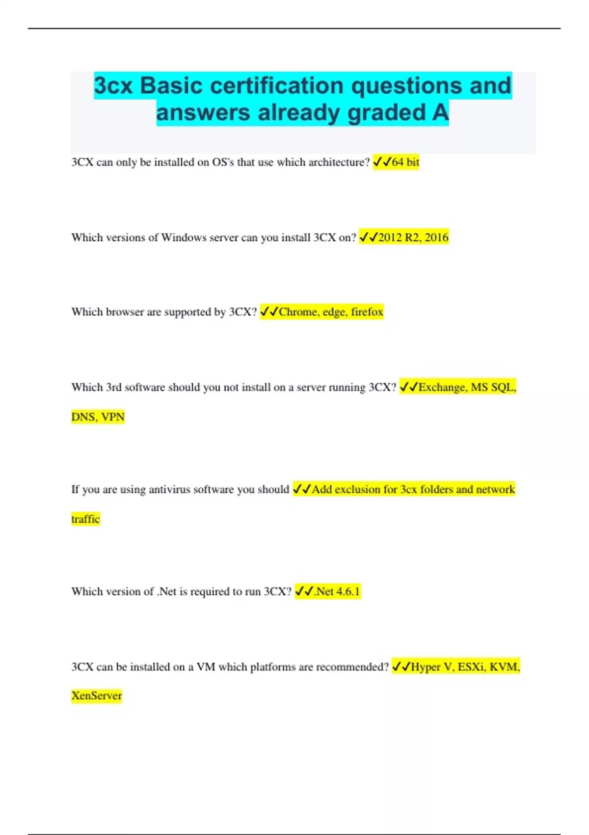 3CX BUNDLED EXAMS QUESTIONS AND ANSWERS LATEST VERSIONS 100% SOLVED