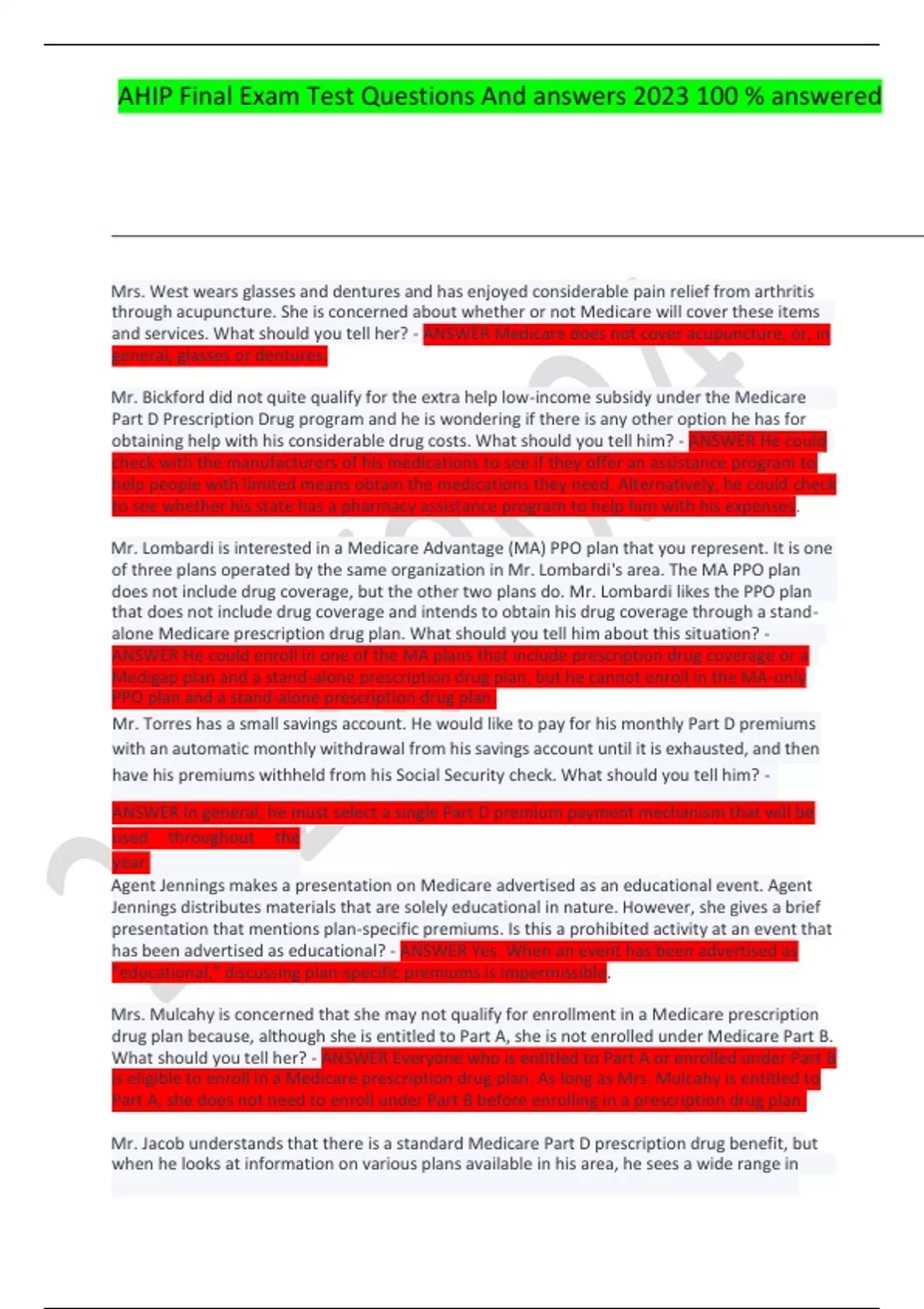 AHIP Final Exam Questions and Answers