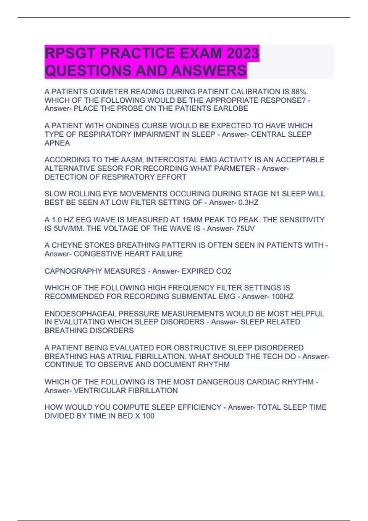 RPSGT PRACTICE EXAM 2023 QUESTIONS AND ANSWERS