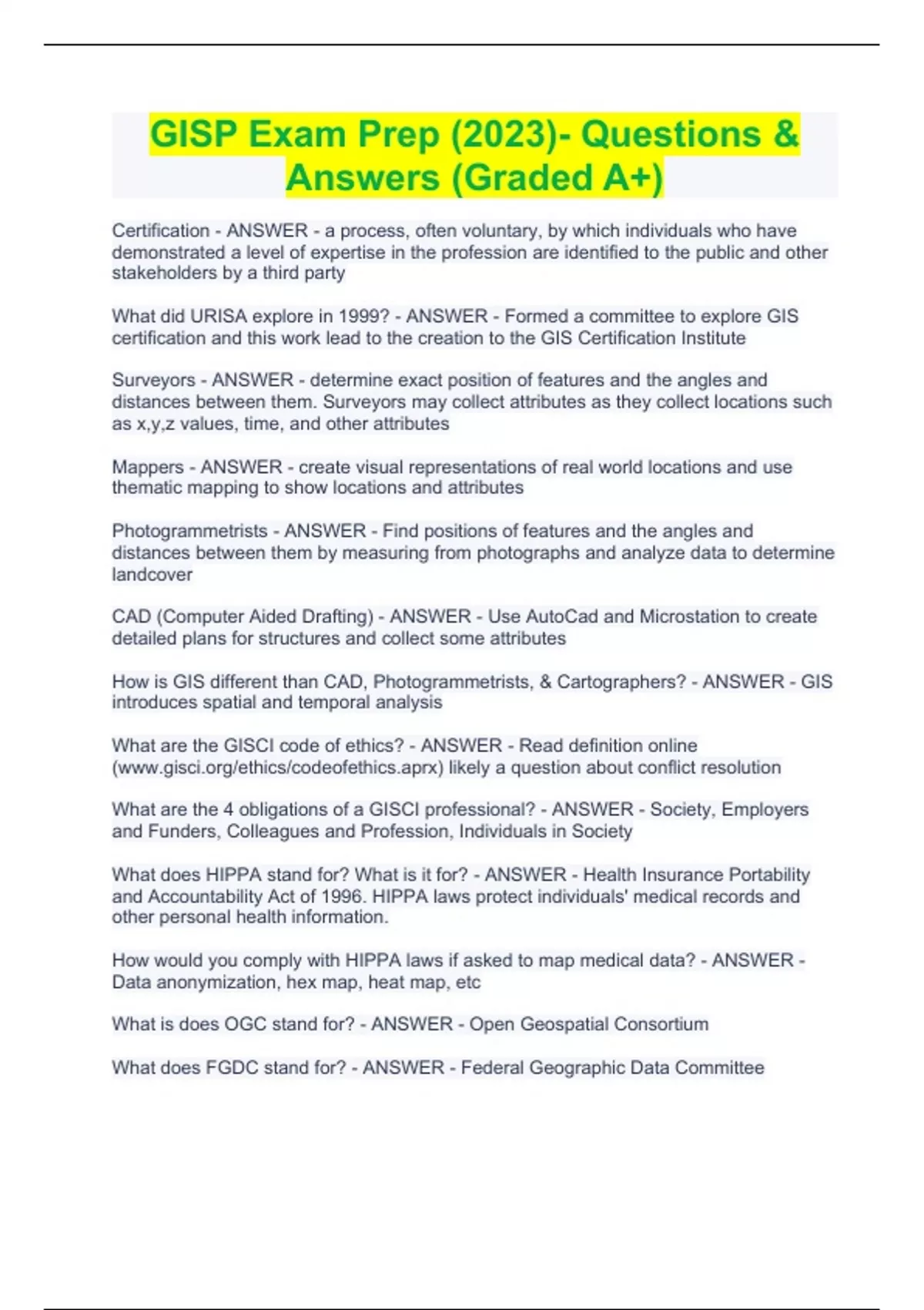 GISP: ANALYTICAL METHODS EXAM BUNDLE (2023) | | COMPLETE QUESTIONS & ANSWERS (GRADED A+) (Includes Images/Illustrations)