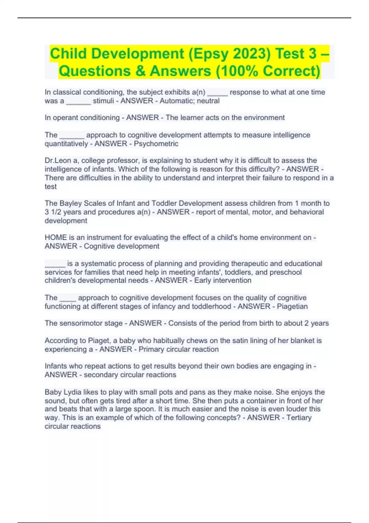 Child Development Comprehensive Exam Bundle (20230) || With Complete Questions & Answers (Graded A+)