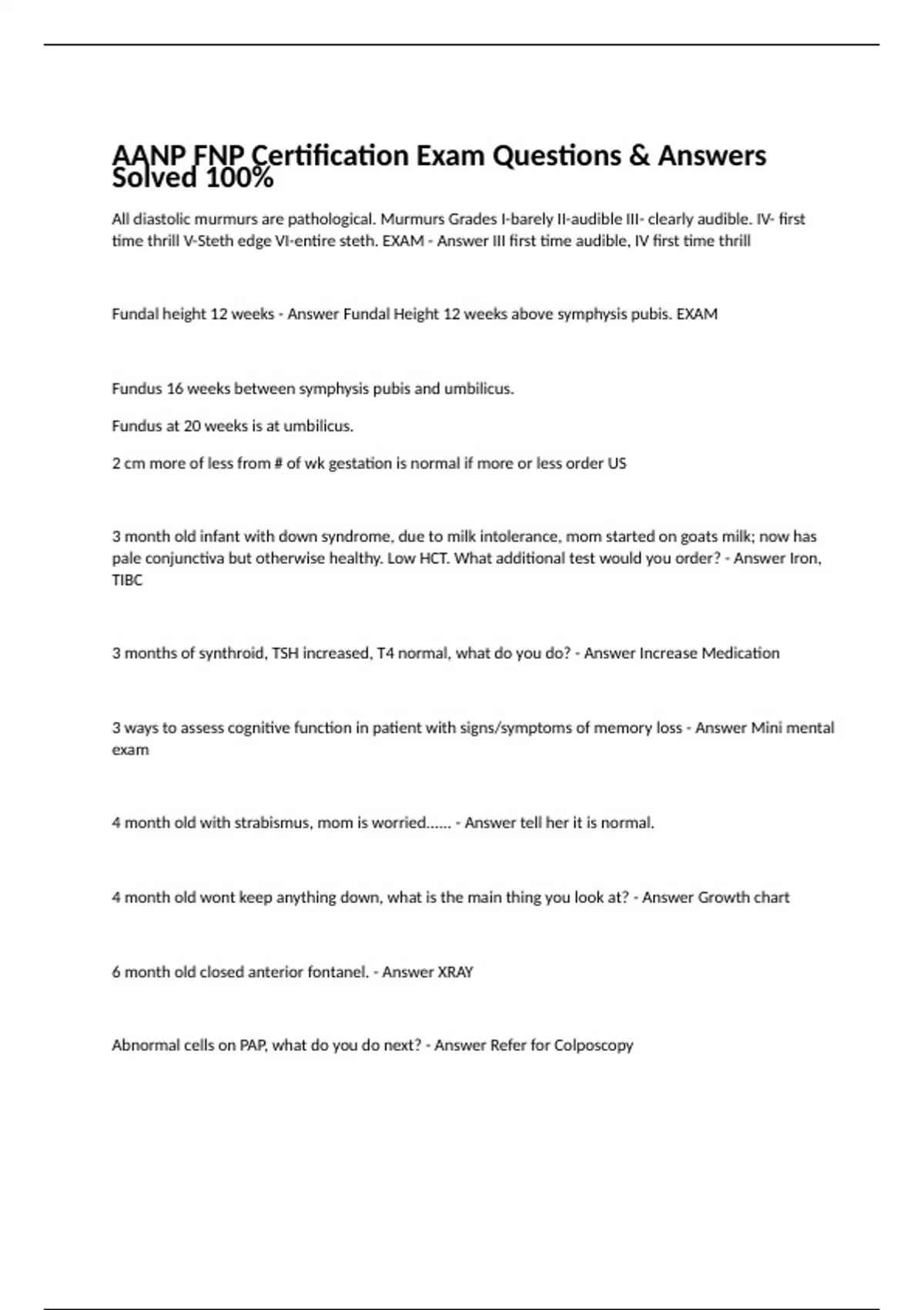 AANP FNP Certification Exam, Study Guide, AANP FNP Certification With Complete Solution, AANP FNP From Practice Exam, AANP-FNP Exam Questions, AANP-FNP Exam With Correct Answers