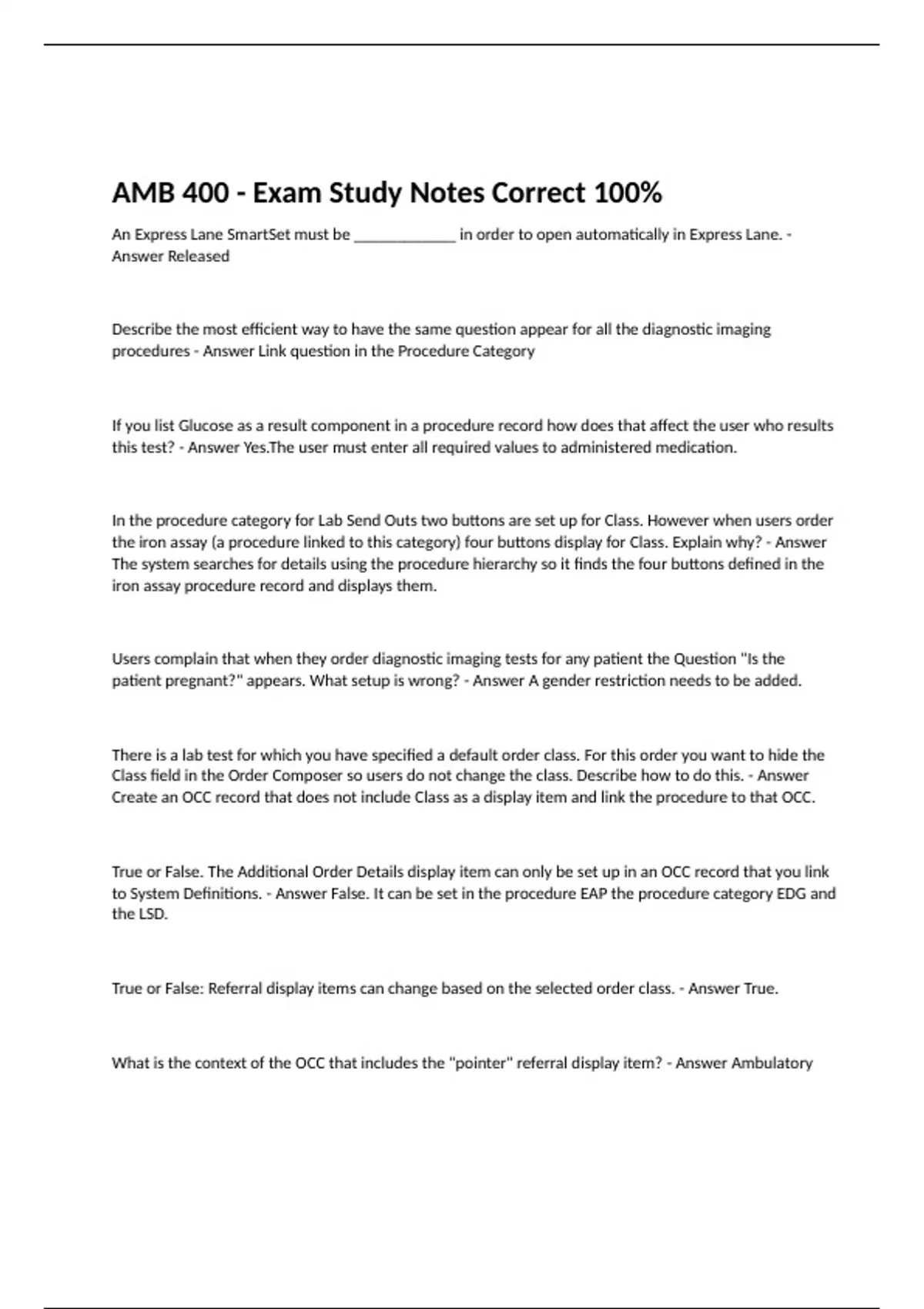 AMB 400 - Exam, Exam Study Notes, SmartSets Questions With Correct Answers, AMB 400 2022 Questions, Assessment Test, Epic Exam With Verified Answers, AMB 400 Exam Questions & Answers, EpicCare Ambulatory Admin,