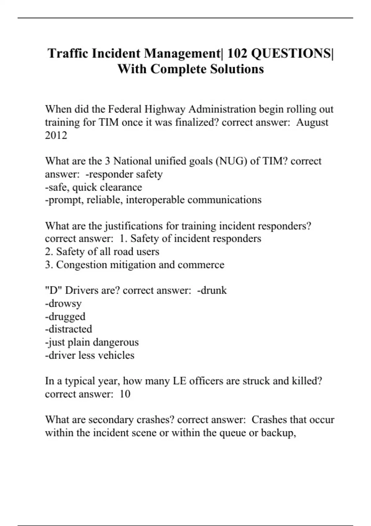 Traffic Incident Management (T.I.M.) Tests Compilation Bundle