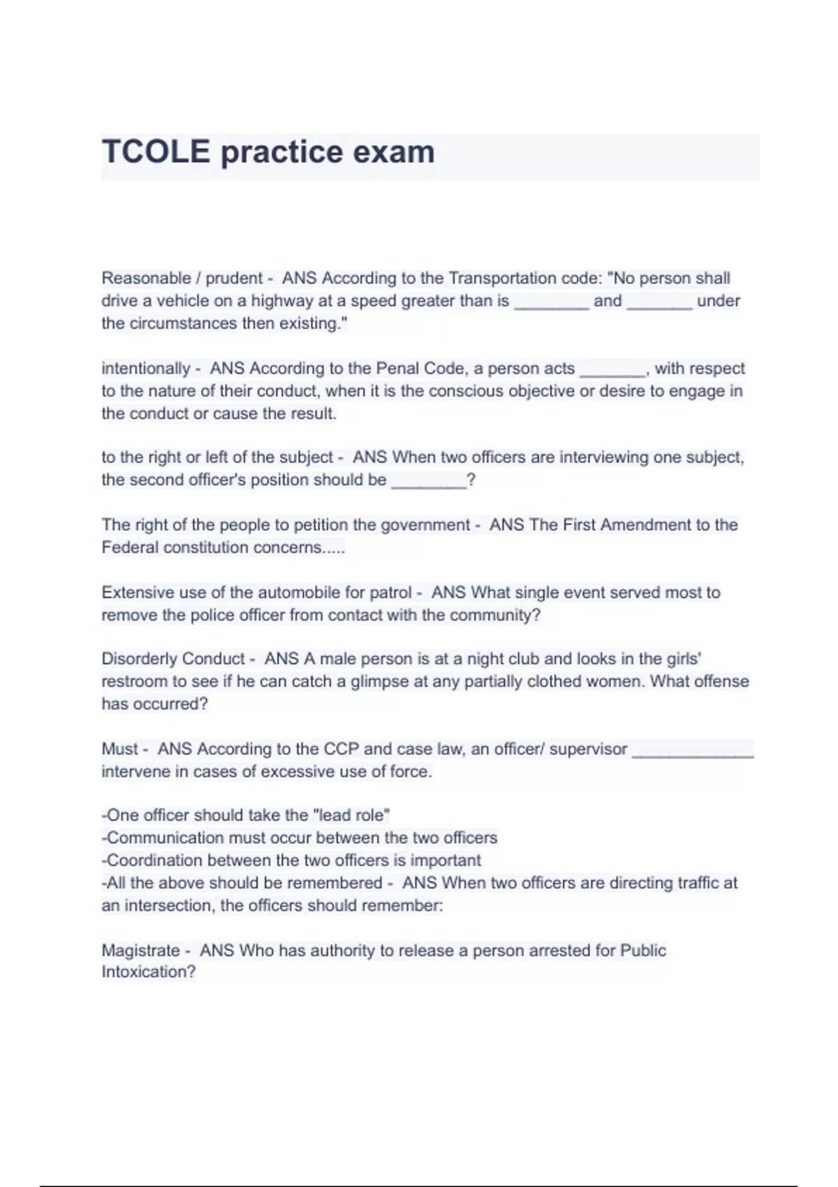 TCOLE Practice Jailer Exam Latest Set Questions & Answers Bundled Here (A+ GRADED 100% VERIFIED)