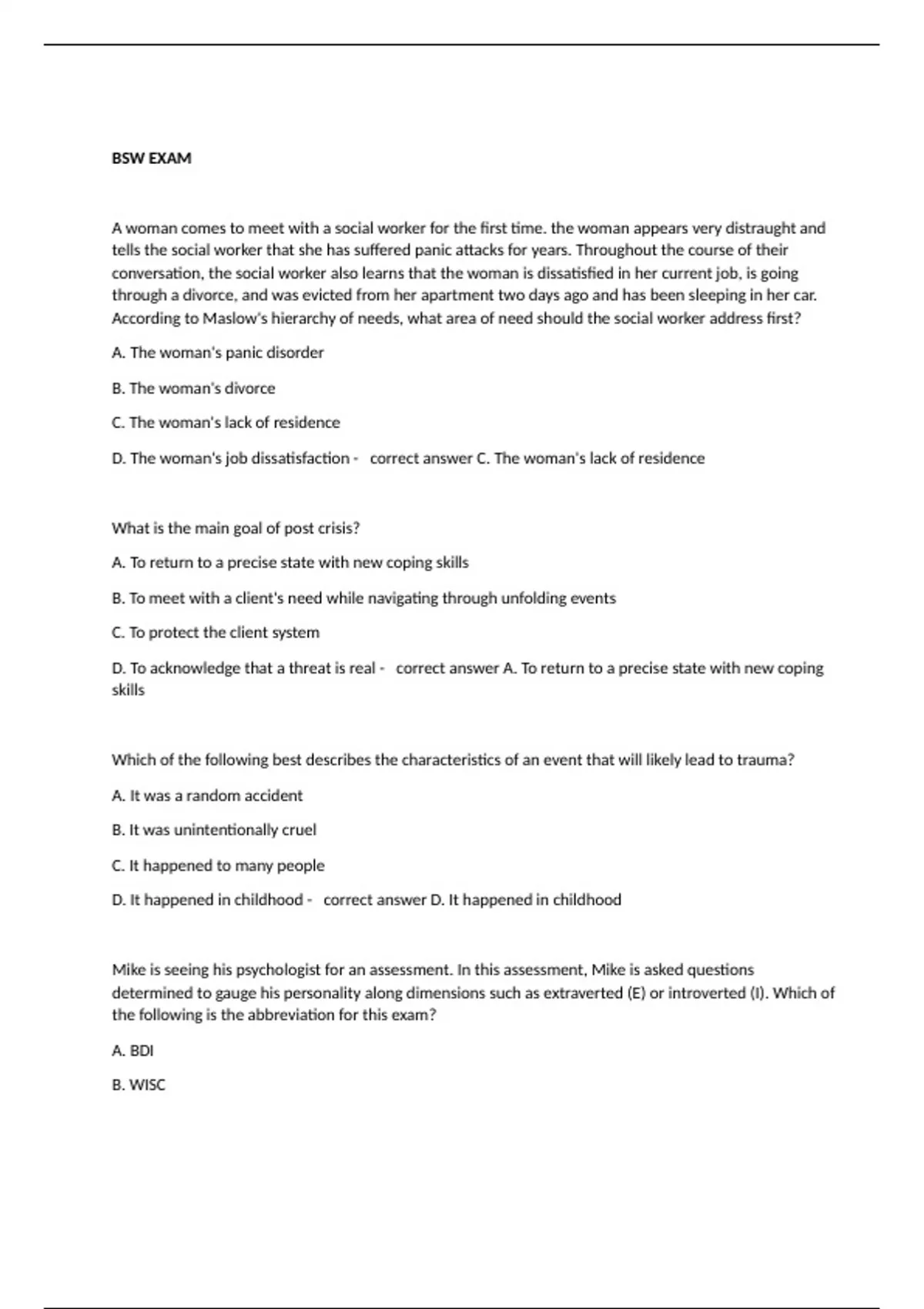 BSW BUNDLED EXAMS questions and 100% correct answers