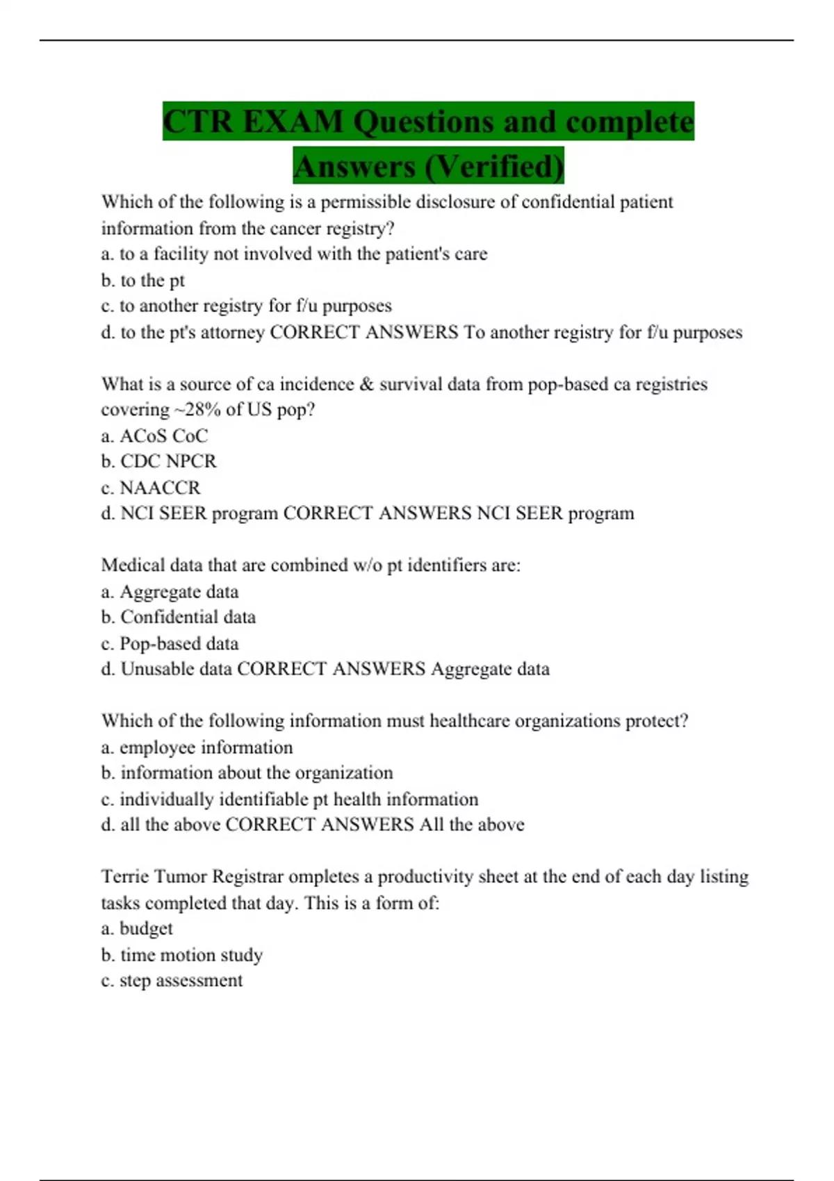 CTR Exam Prep (All Sources Combined) Answered Correctly!! Lesson 1 CTR Exam Review with complete solutions (verified) CTR exam prep Questions and complete Answers CTR Exam Practice Test With all solutions complete