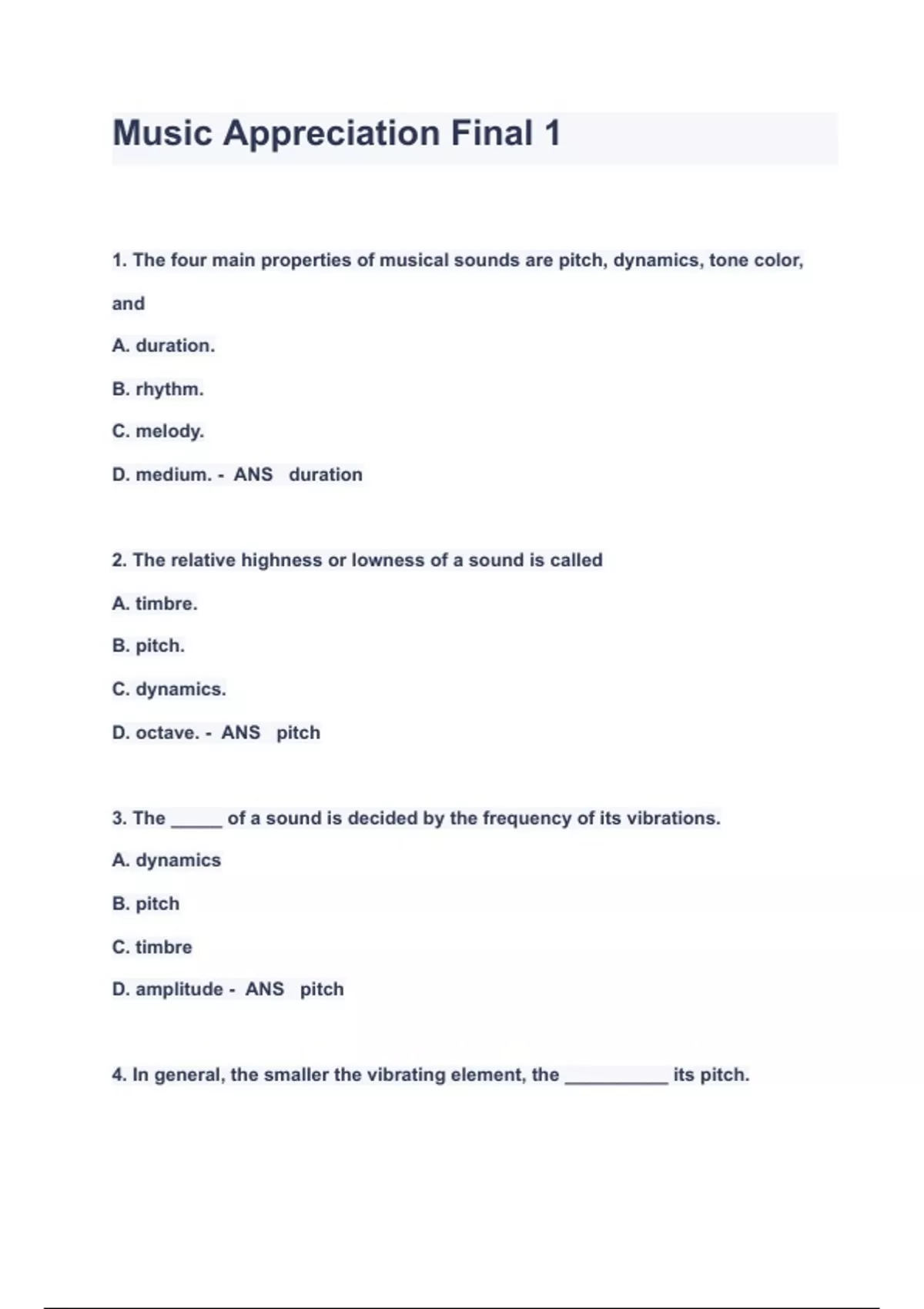 Music Appreciation FULL BUNDLE !!!! ACTUAL EXAMS || ACTUAL TEST|| FULL PACKAGE SOLUTION 2023 ( A+ GRADED 100% VERIFIED)