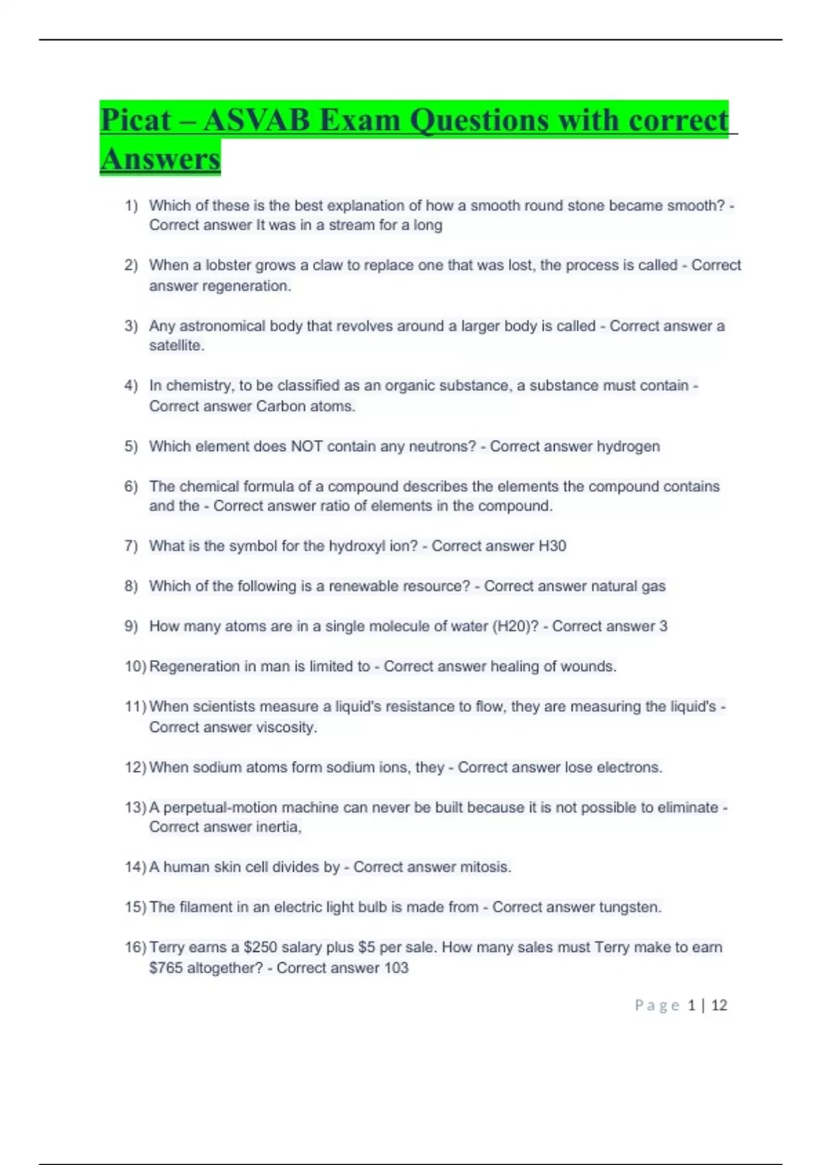 ASVAB PICAT/Picat Exam Bundle (Graded A) updated 2023